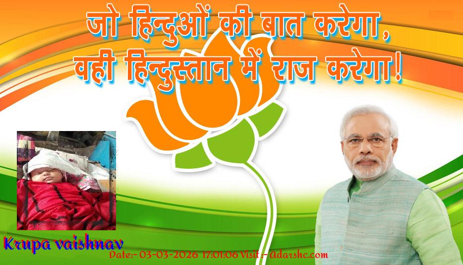 मैं (Krupa vaishnav) अपने 🌷 BJP पार्टी की ओर से आपको हार्दिक - हार्दिक बधाई देता हूँ, ईस पार्टी को सहयोग देने के लिये 🌷