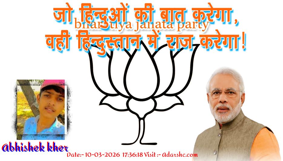 मैं (Abhishek kher) अपने 🌷 BJP पार्टी की ओर से आपको हार्दिक - हार्दिक बधाई देता हूँ, ईस पार्टी को सहयोग देने के लिये 🌷