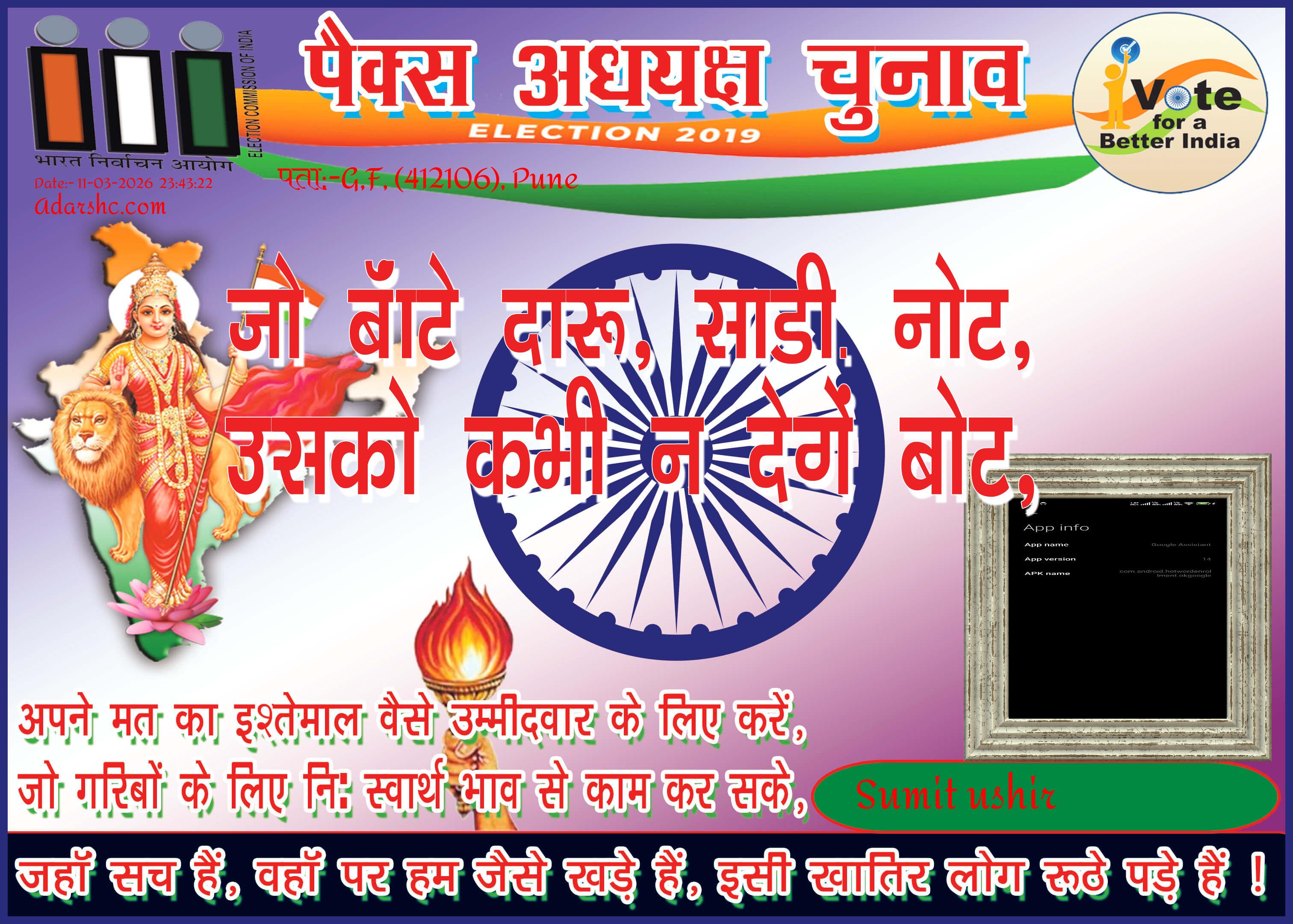 पैक्स चुनाव - 2019 को लेकर यह संदेश लोगों के हित में और सही प्रतिनिधि चुनने हेतु उद्देश्य से जारी किया गया है ! 🙏