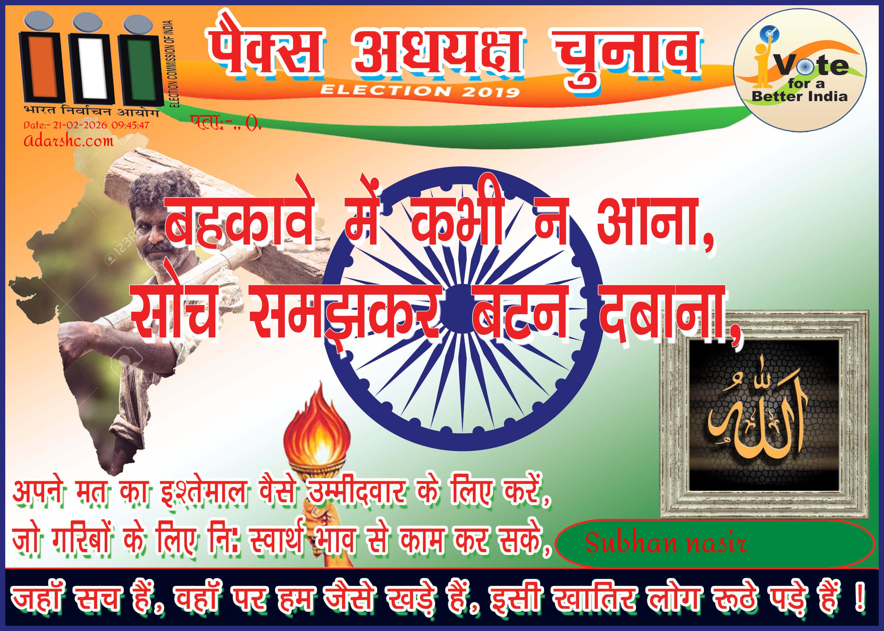 पैक्स चुनाव - 2019 को लेकर यह संदेश लोगों के हित में और सही प्रतिनिधि चुनने हेतु उद्देश्य से जारी किया गया है ! 🙏