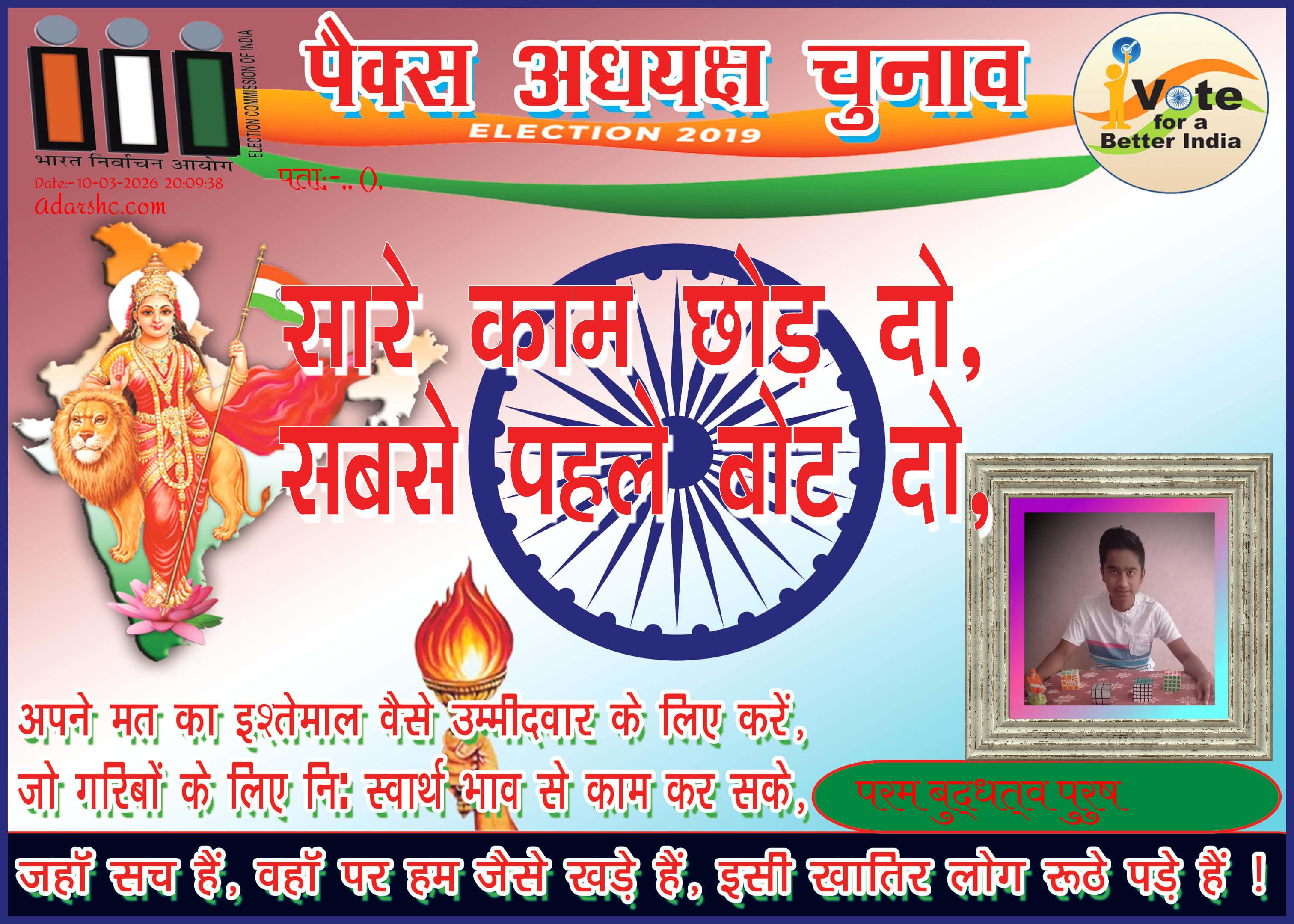 पैक्स चुनाव - 2019 को लेकर यह संदेश लोगों के हित में और सही प्रतिनिधि चुनने हेतु उद्देश्य से जारी किया गया है ! 🙏