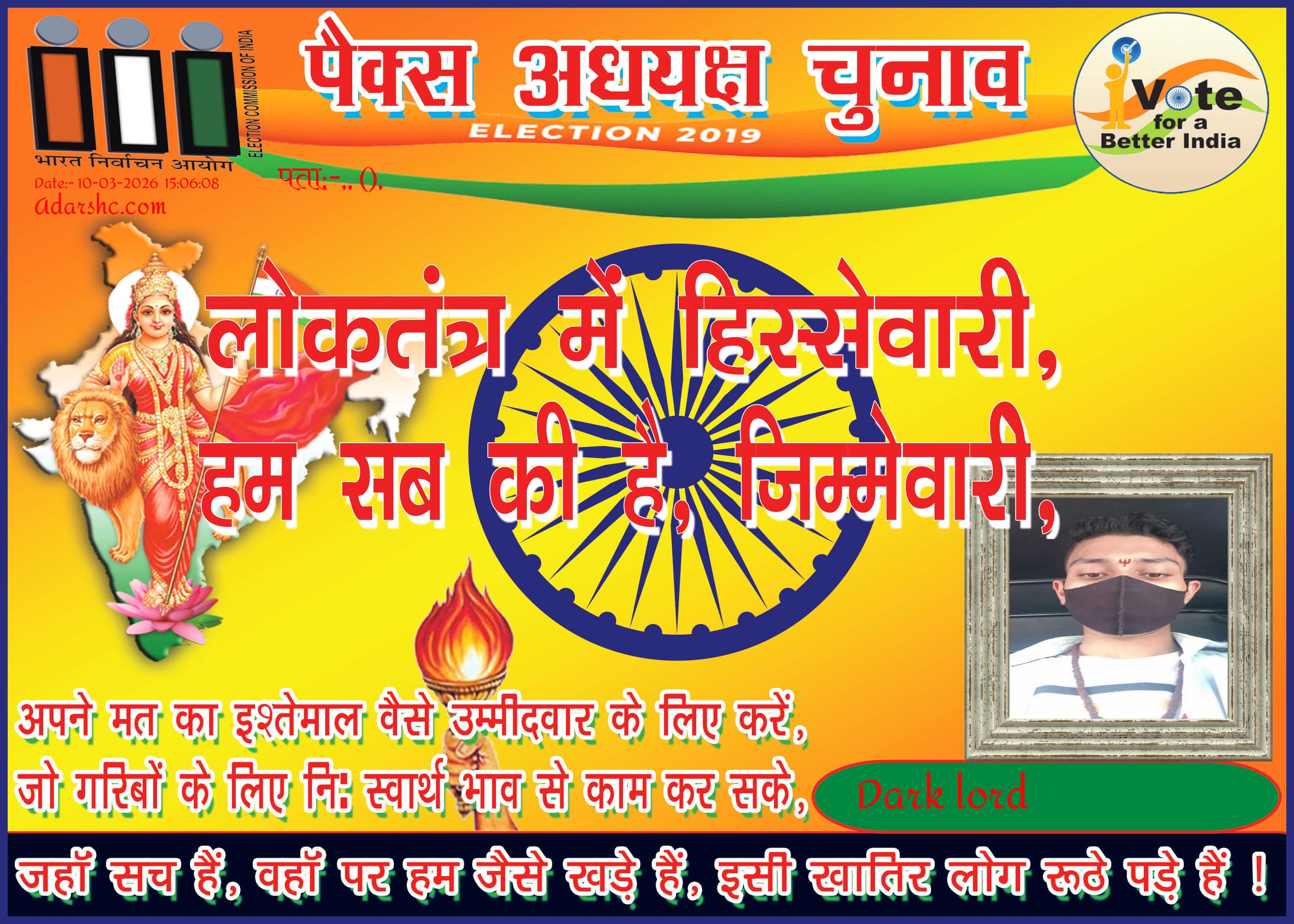 पैक्स चुनाव - 2019 को लेकर यह संदेश लोगों के हित में और सही प्रतिनिधि चुनने हेतु उद्देश्य से जारी किया गया है ! 🙏