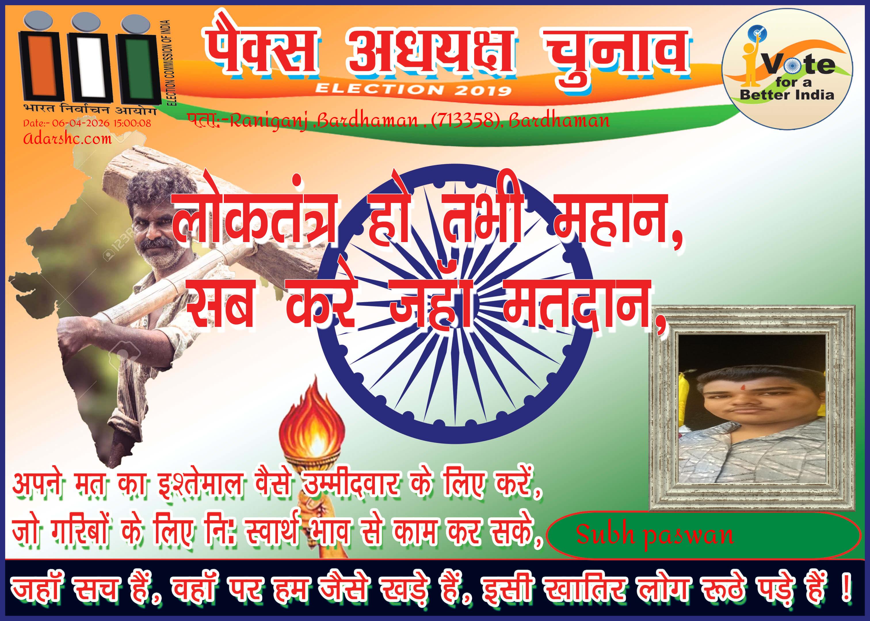 पैक्स चुनाव - 2019 को लेकर यह संदेश लोगों के हित में और सही प्रतिनिधि चुनने हेतु उद्देश्य से जारी किया गया है ! 🙏