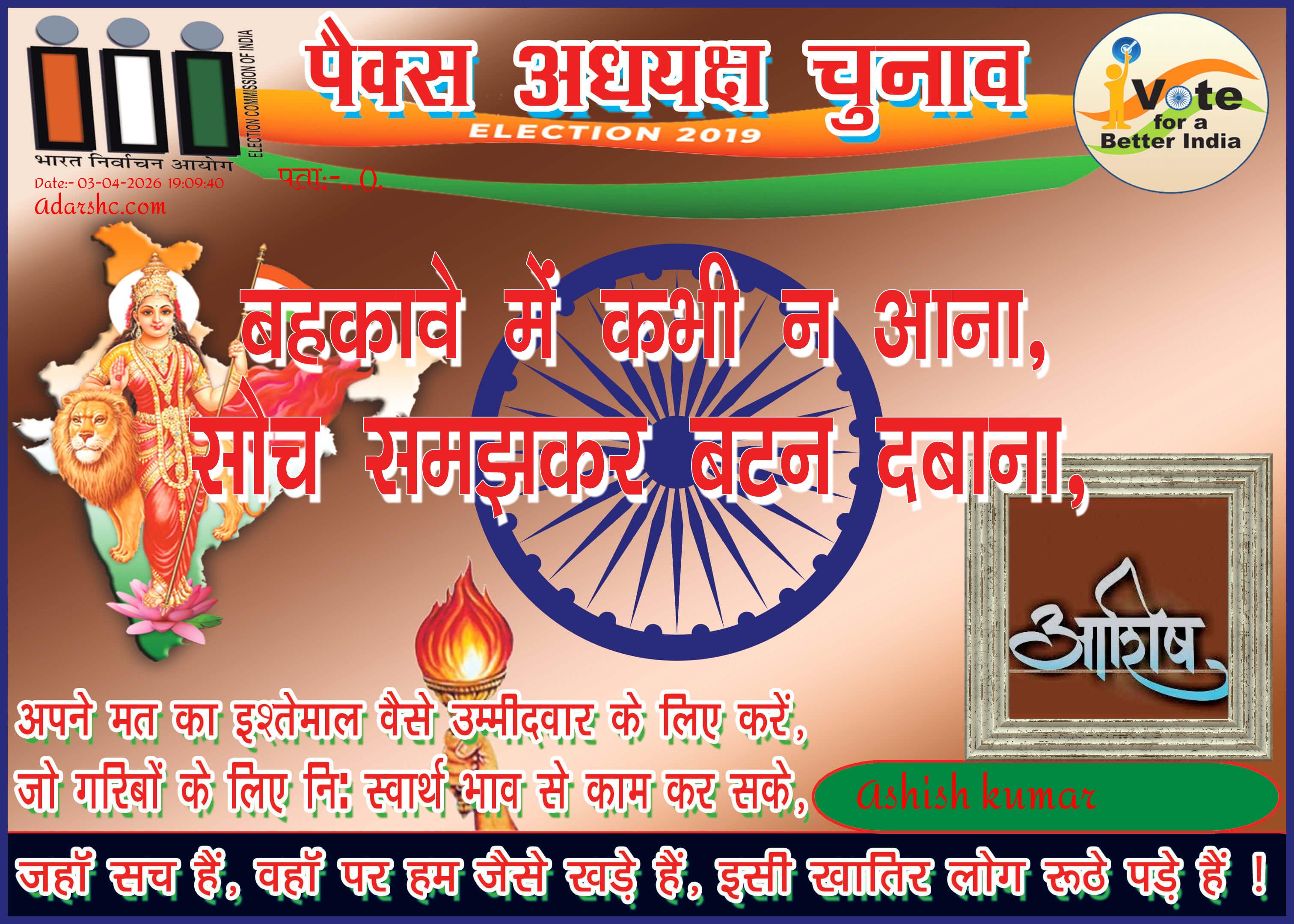 पैक्स चुनाव - 2019 को लेकर यह संदेश लोगों के हित में और सही प्रतिनिधि चुनने हेतु उद्देश्य से जारी किया गया है ! 🙏
