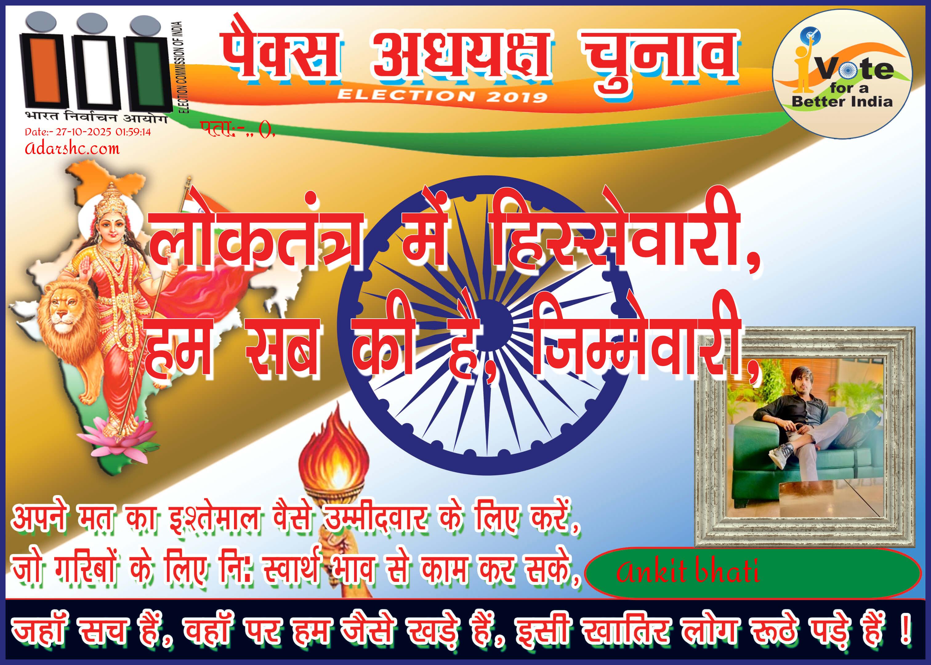 पैक्स चुनाव - 2019 को लेकर यह संदेश लोगों के हित में और सही प्रतिनिधि चुनने हेतु उद्देश्य से जारी किया गया है ! 🙏