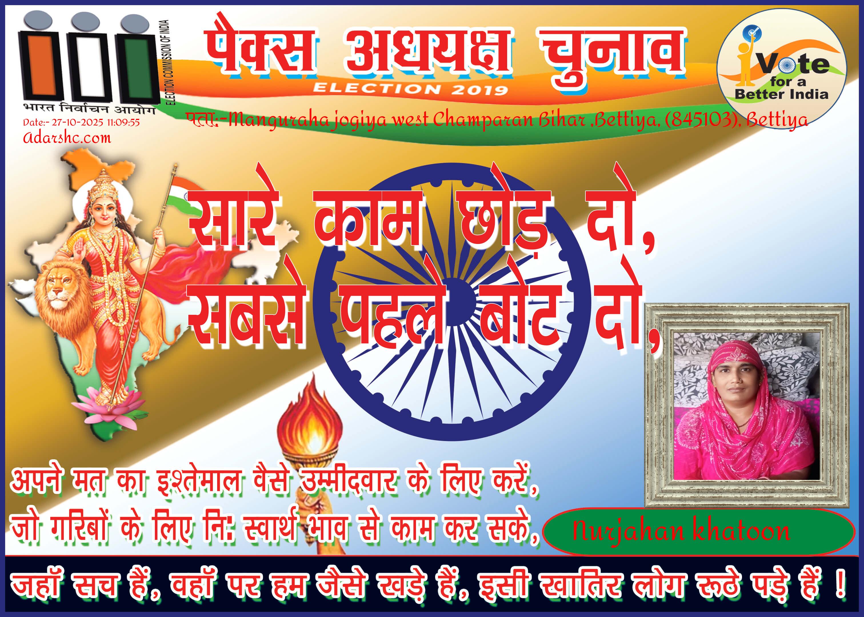 पैक्स चुनाव - 2019 को लेकर यह संदेश लोगों के हित में और सही प्रतिनिधि चुनने हेतु उद्देश्य से जारी किया गया है ! 🙏