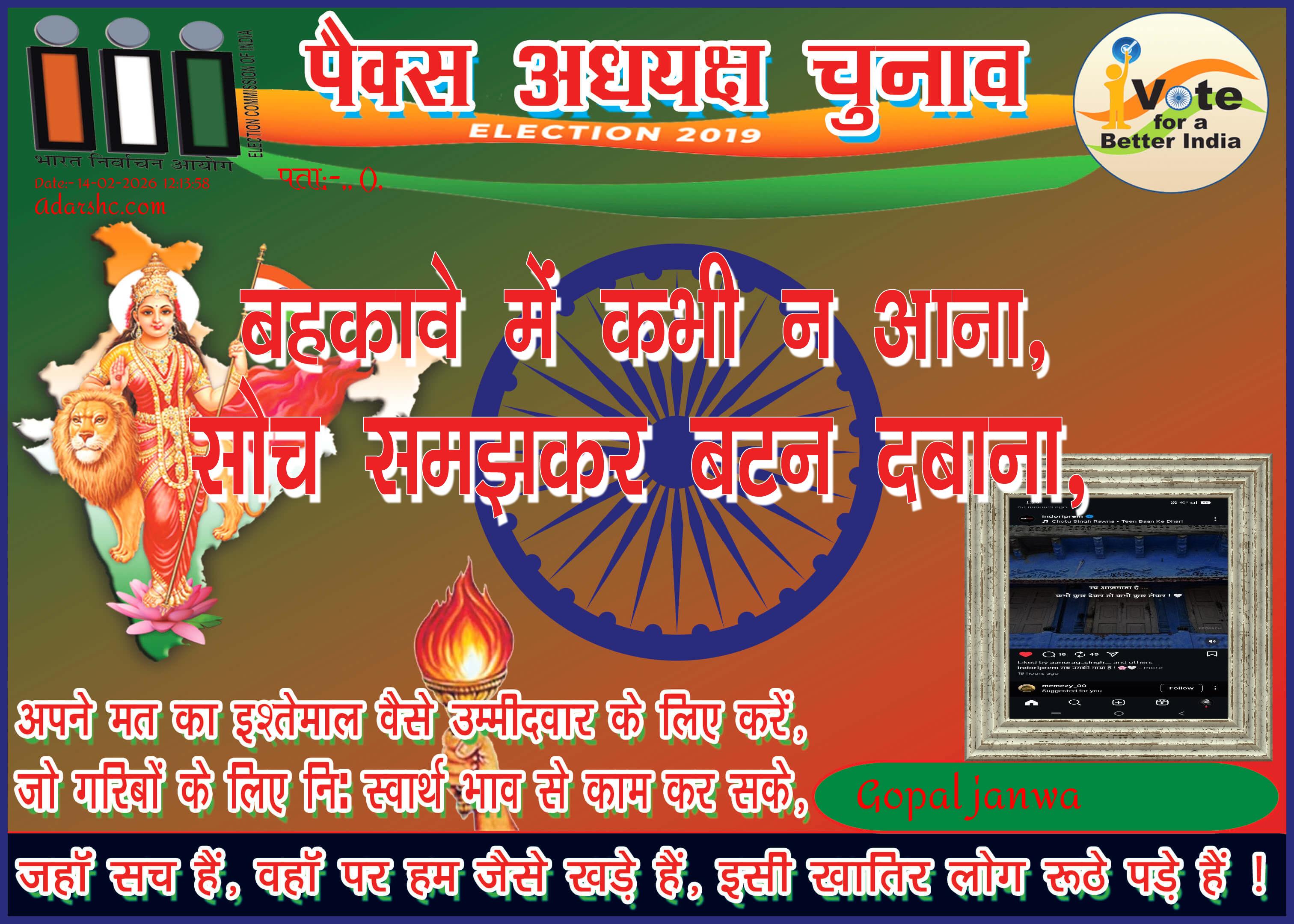 पैक्स चुनाव - 2019 को लेकर यह संदेश लोगों के हित में और सही प्रतिनिधि चुनने हेतु उद्देश्य से जारी किया गया है ! 🙏