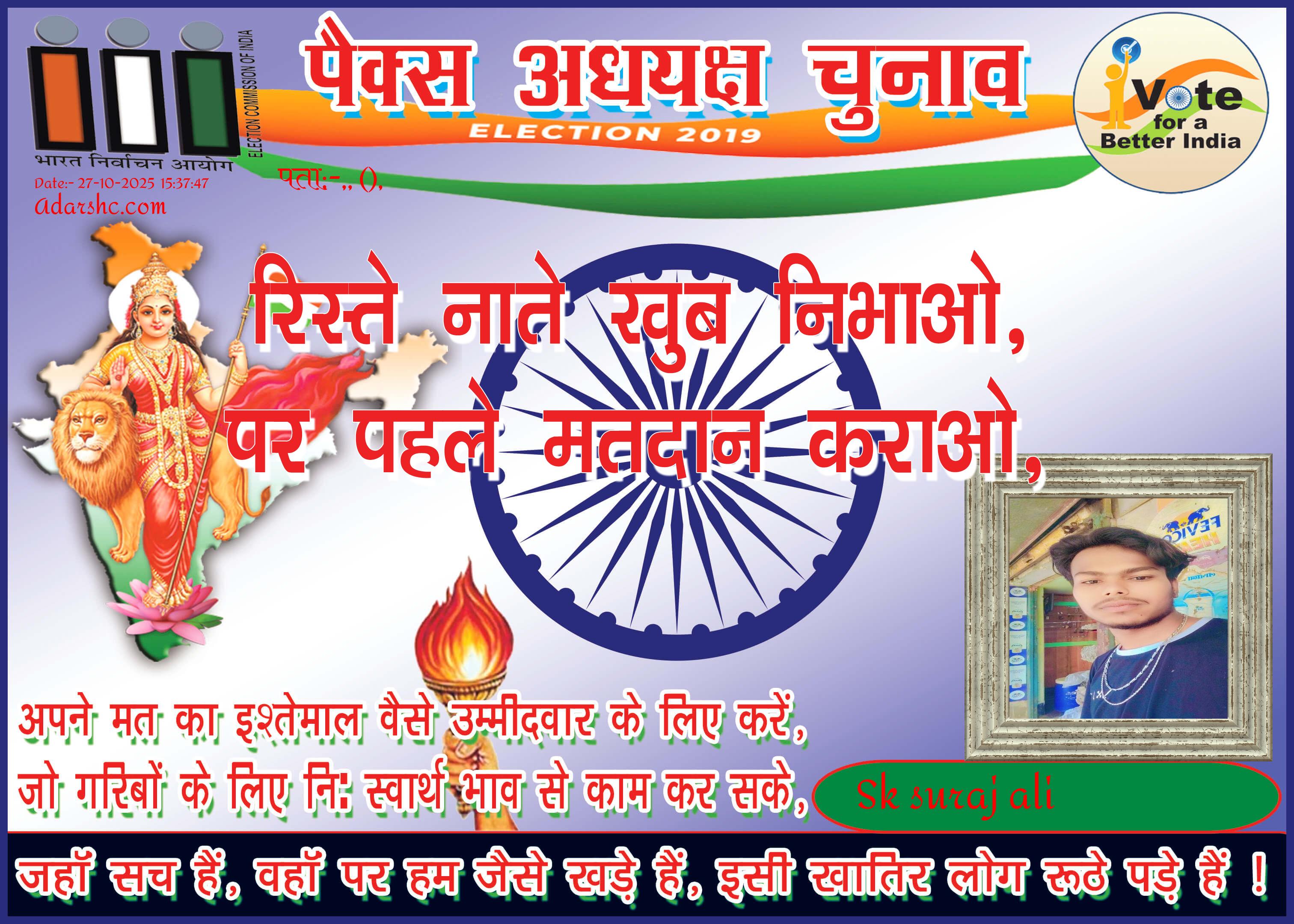 पैक्स चुनाव - 2019 को लेकर यह संदेश लोगों के हित में और सही प्रतिनिधि चुनने हेतु उद्देश्य से जारी किया गया है ! 🙏