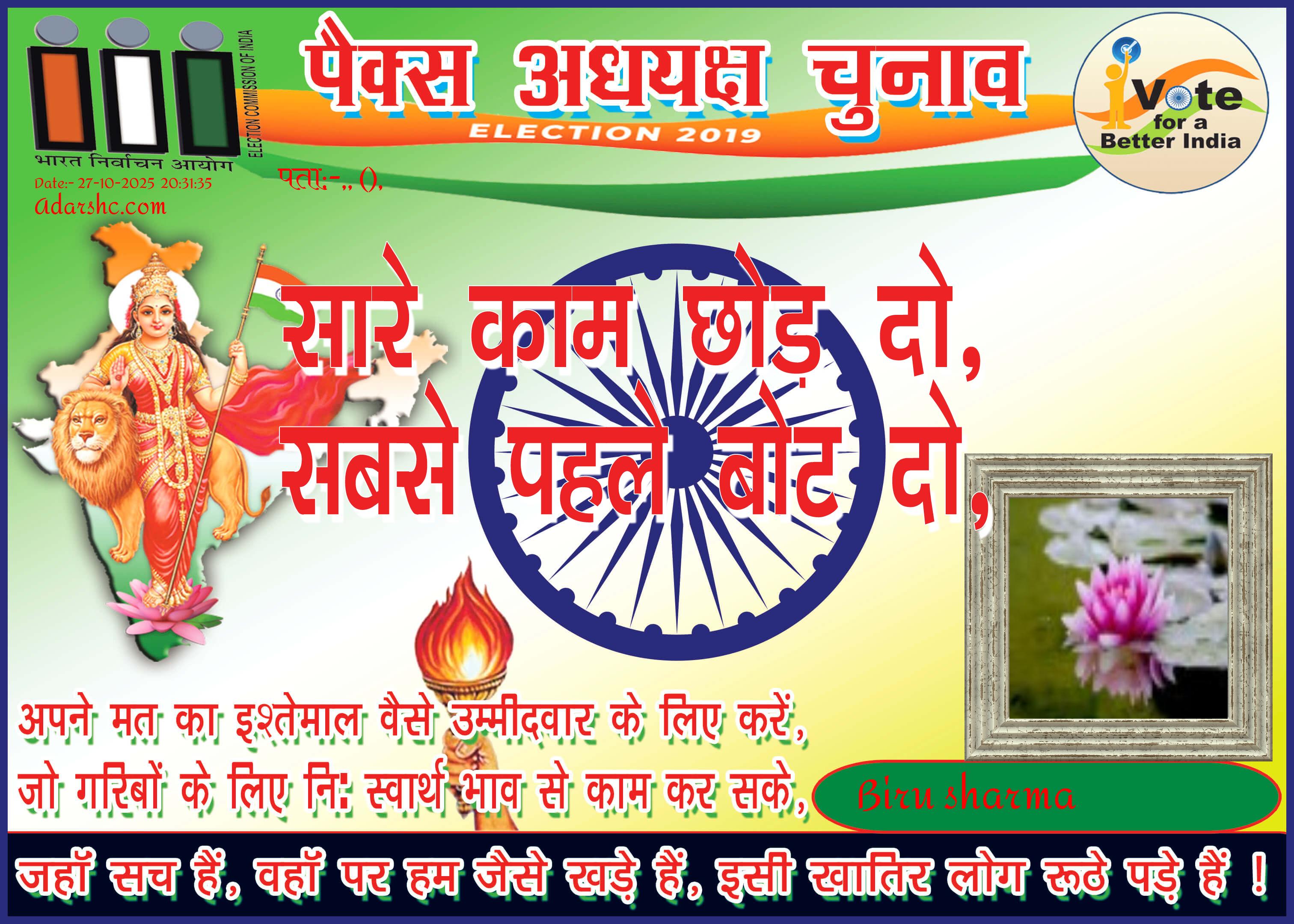 पैक्स चुनाव - 2019 को लेकर यह संदेश लोगों के हित में और सही प्रतिनिधि चुनने हेतु उद्देश्य से जारी किया गया है ! 🙏