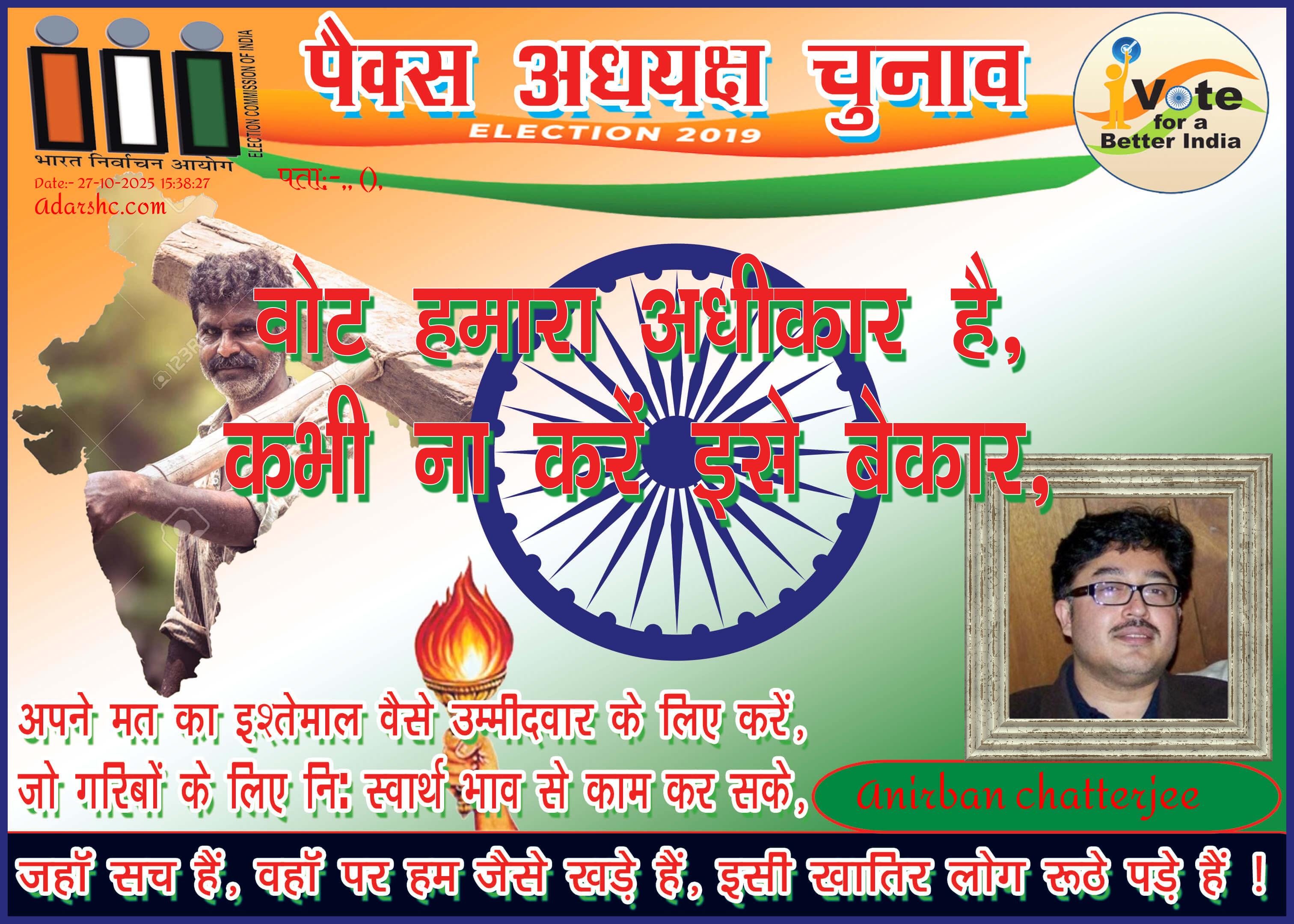 पैक्स चुनाव - 2019 को लेकर यह संदेश लोगों के हित में और सही प्रतिनिधि चुनने हेतु उद्देश्य से जारी किया गया है ! 🙏
