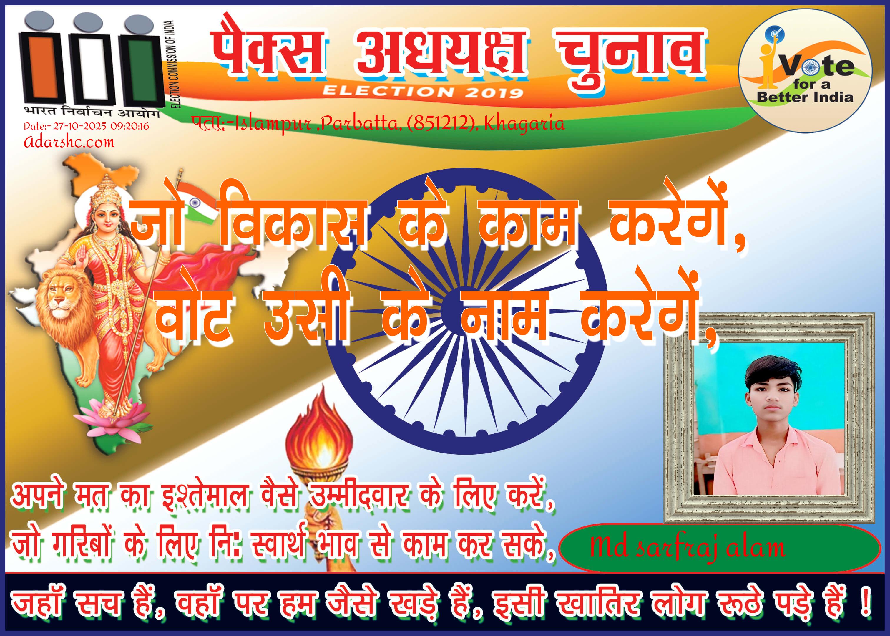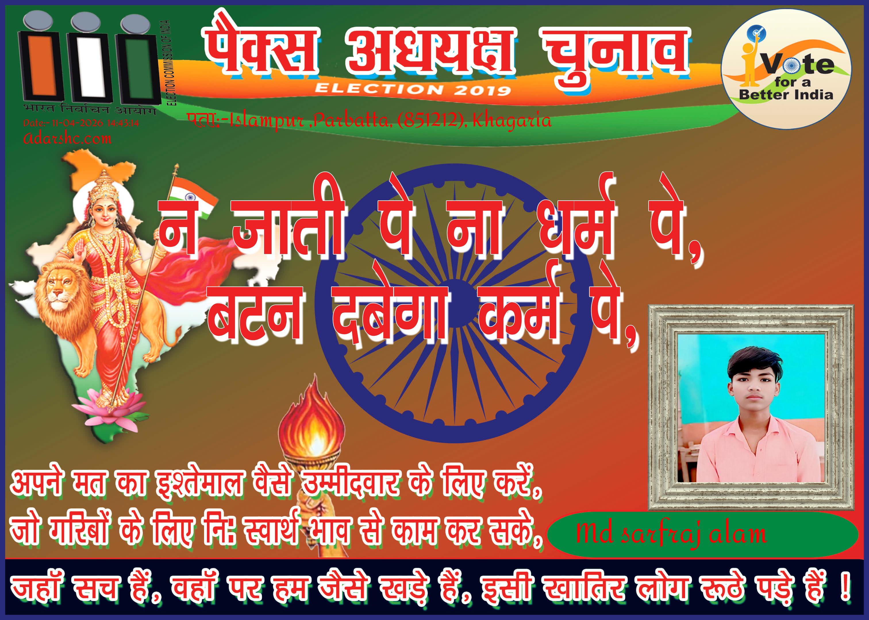 पैक्स चुनाव - 2019 को लेकर यह संदेश लोगों के हित में और सही प्रतिनिधि चुनने हेतु उद्देश्य से जारी किया गया है ! 🙏