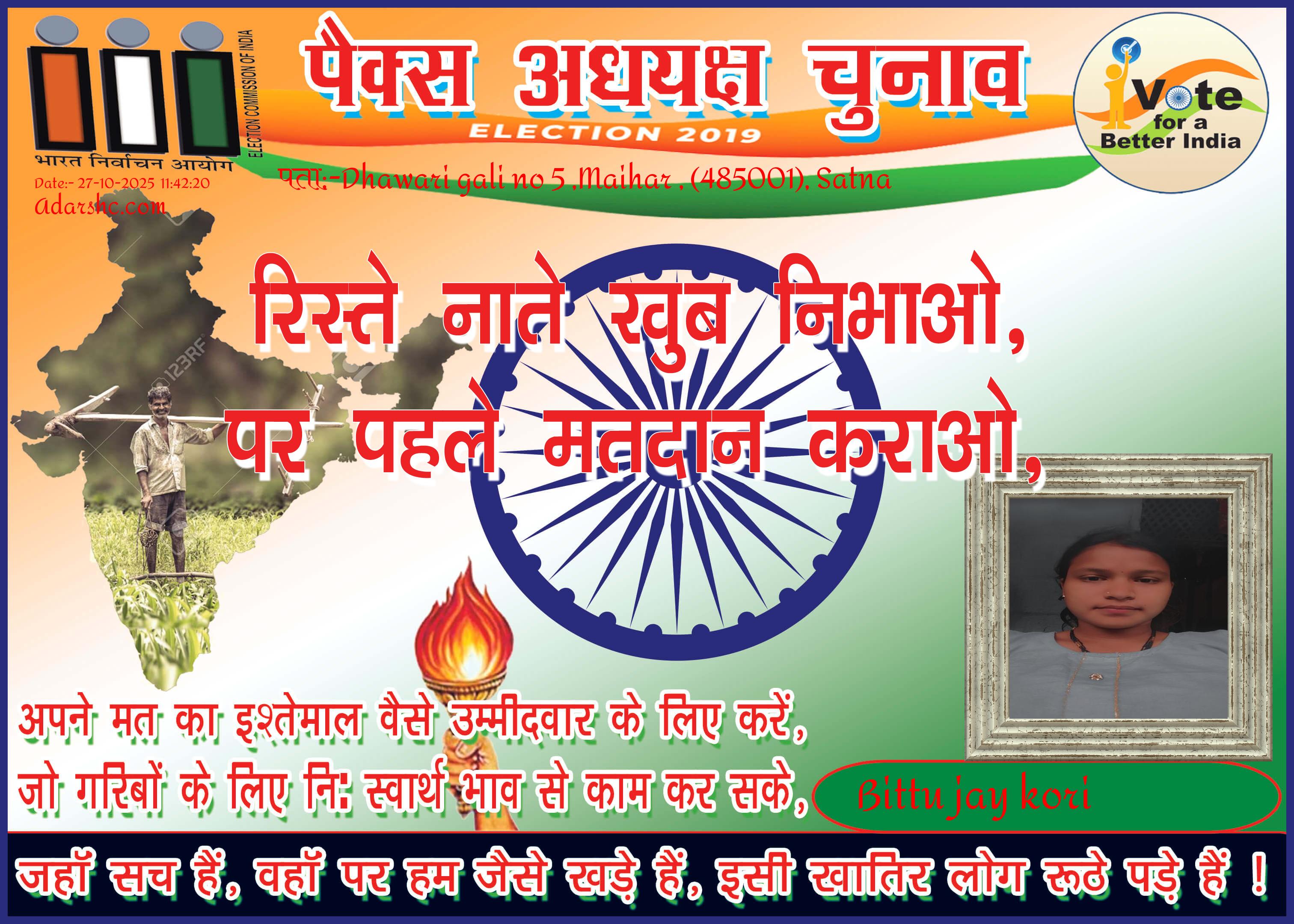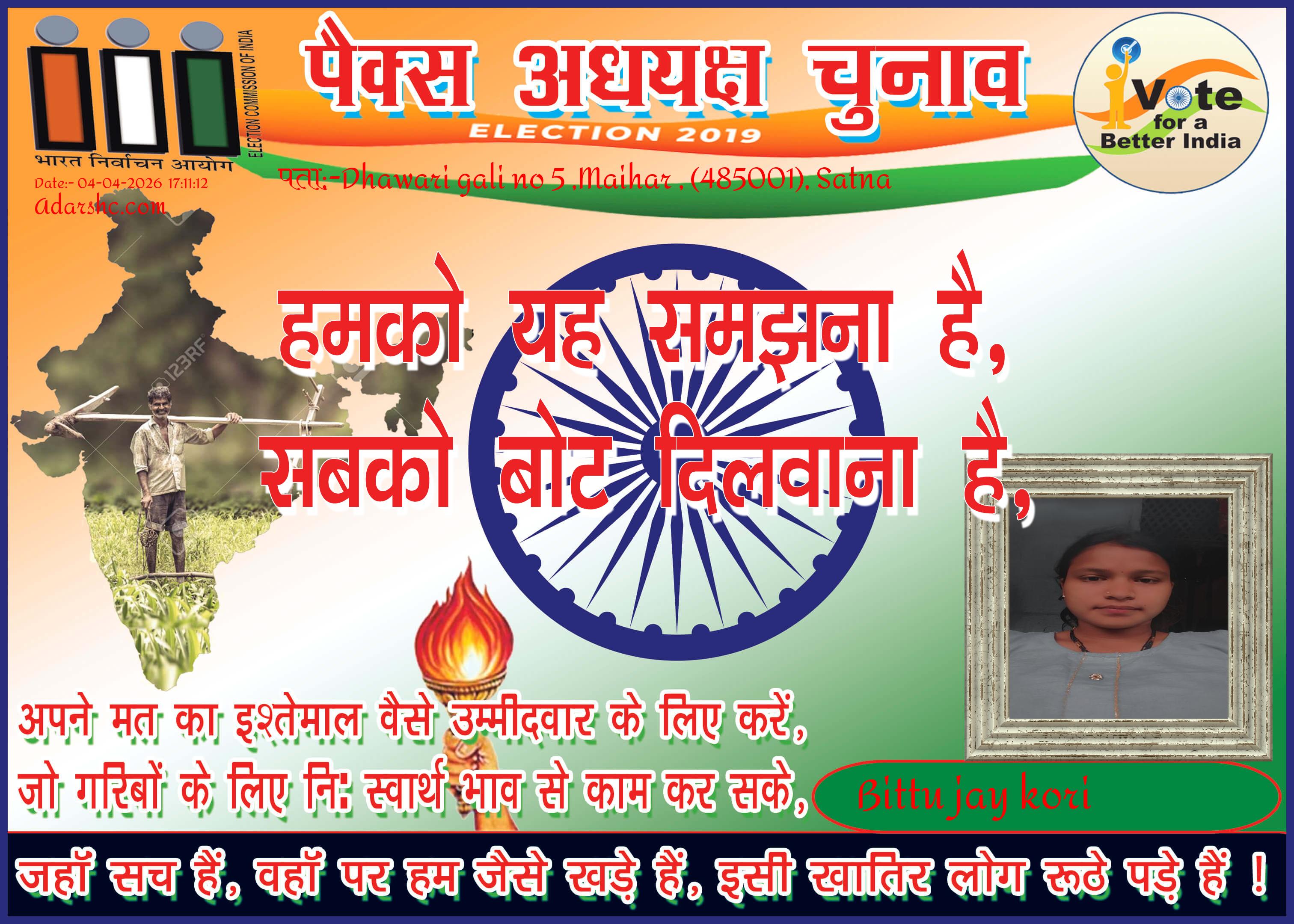 पैक्स चुनाव - 2019 को लेकर यह संदेश लोगों के हित में और सही प्रतिनिधि चुनने हेतु उद्देश्य से जारी किया गया है ! 🙏