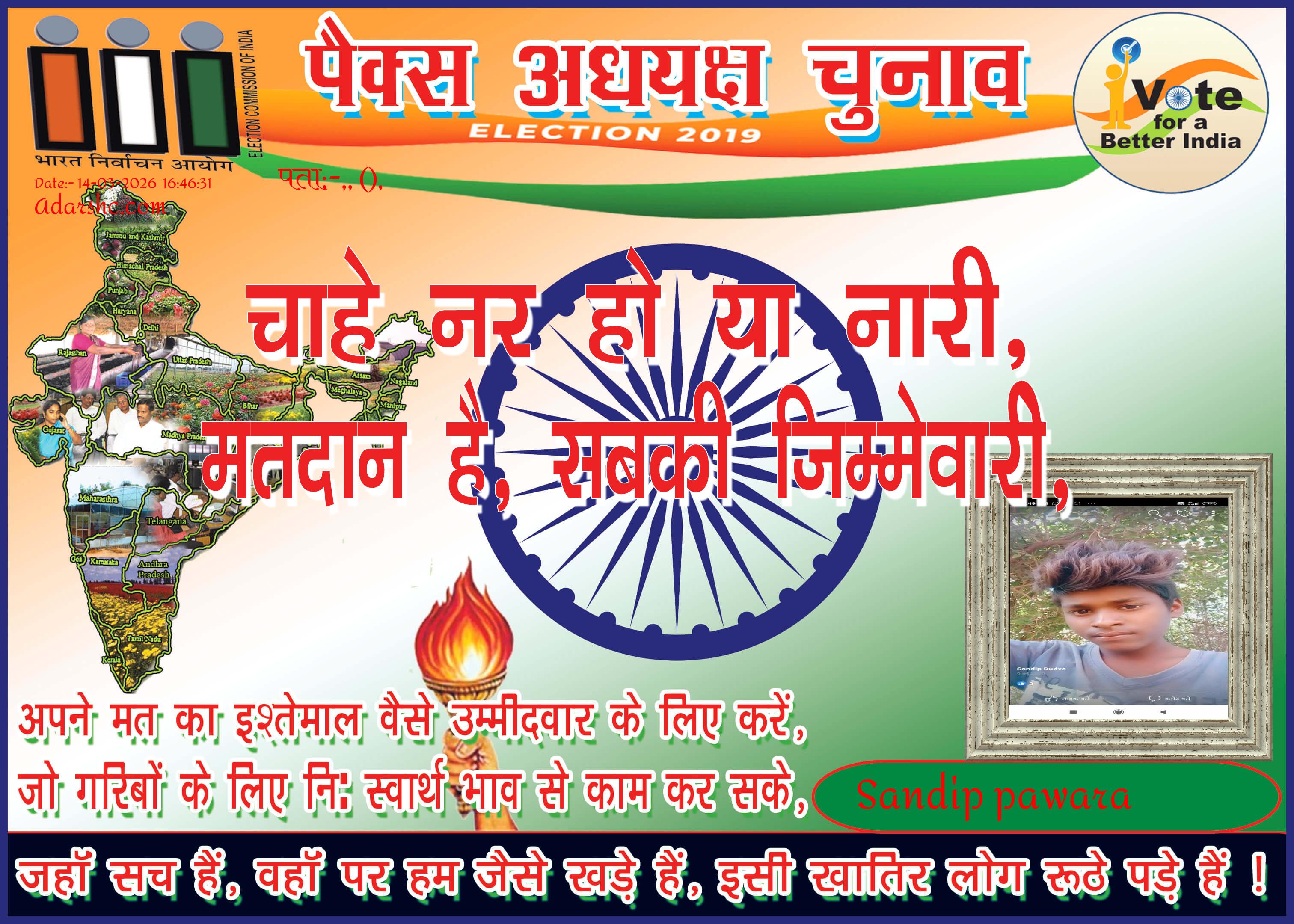 पैक्स चुनाव - 2019 को लेकर यह संदेश लोगों के हित में और सही प्रतिनिधि चुनने हेतु उद्देश्य से जारी किया गया है ! 🙏