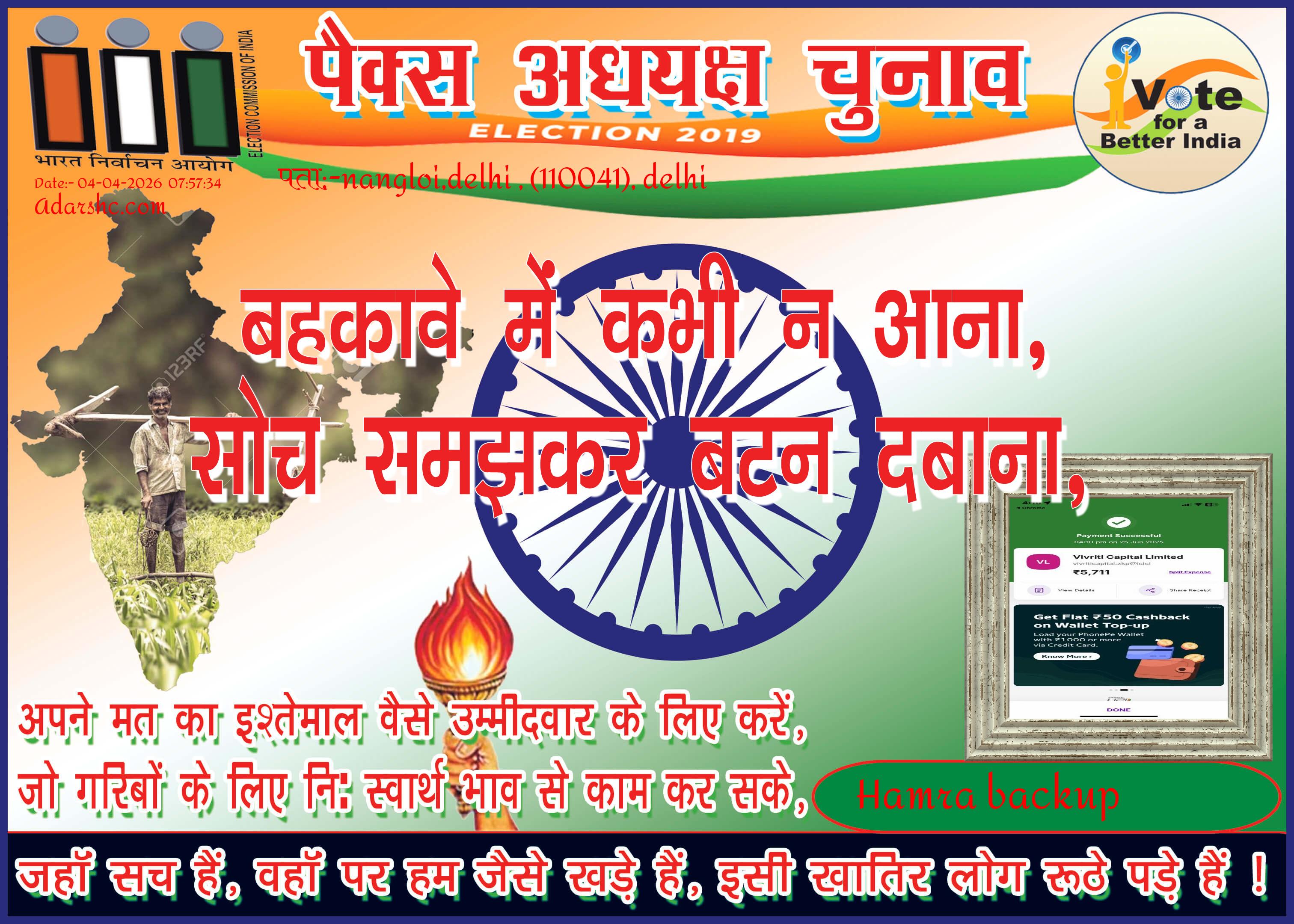 पैक्स चुनाव - 2019 को लेकर यह संदेश लोगों के हित में और सही प्रतिनिधि चुनने हेतु उद्देश्य से जारी किया गया है ! 🙏