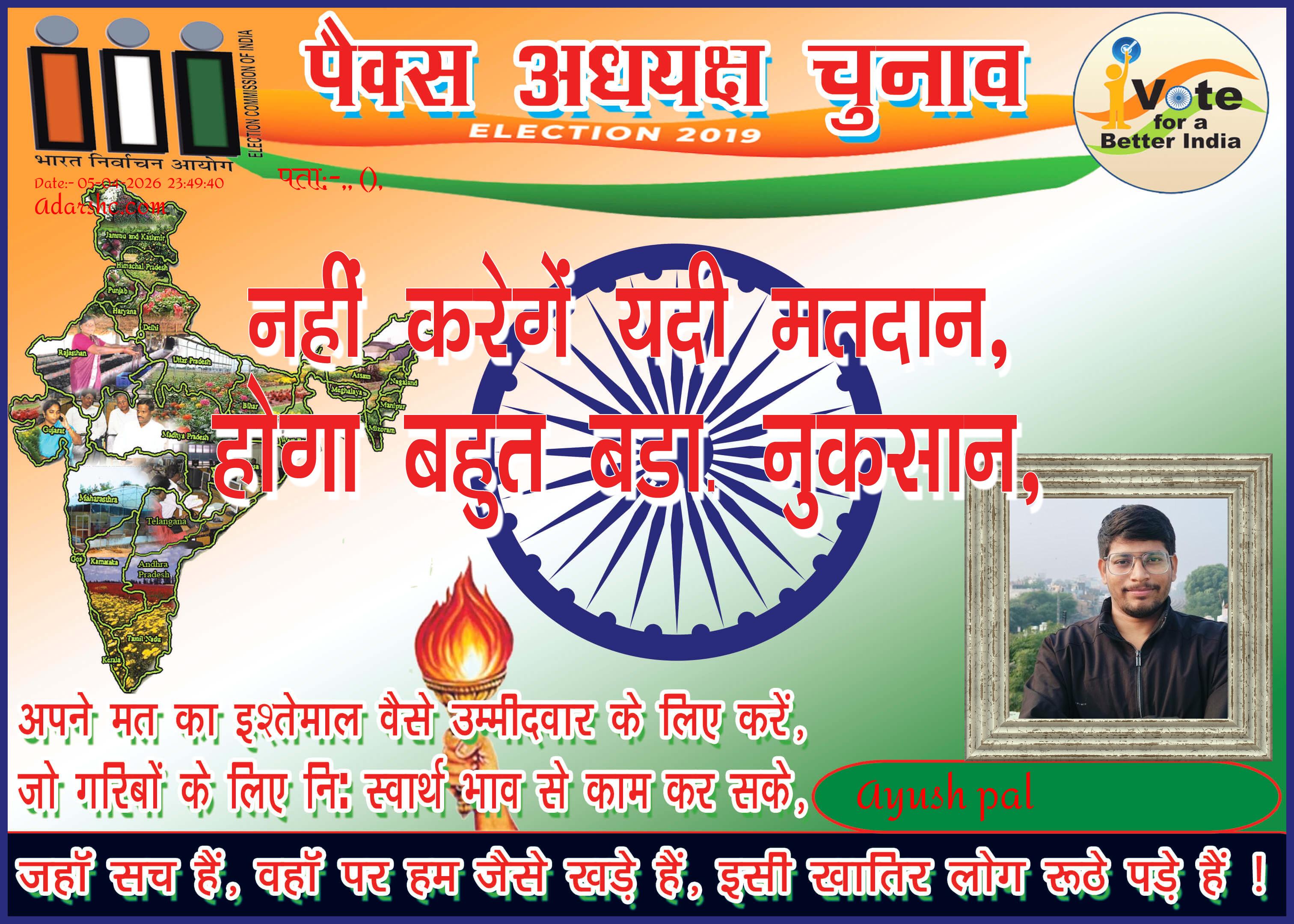 पैक्स चुनाव - 2019 को लेकर यह संदेश लोगों के हित में और सही प्रतिनिधि चुनने हेतु उद्देश्य से जारी किया गया है ! 🙏