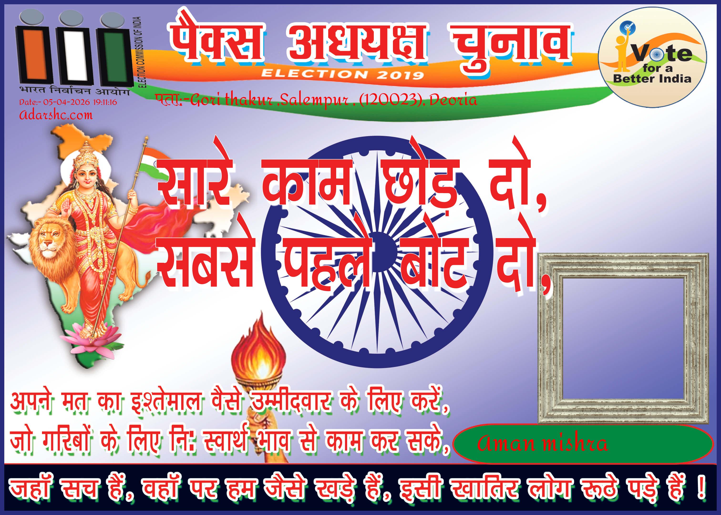 पैक्स चुनाव - 2019 को लेकर यह संदेश लोगों के हित में और सही प्रतिनिधि चुनने हेतु उद्देश्य से जारी किया गया है ! 🙏