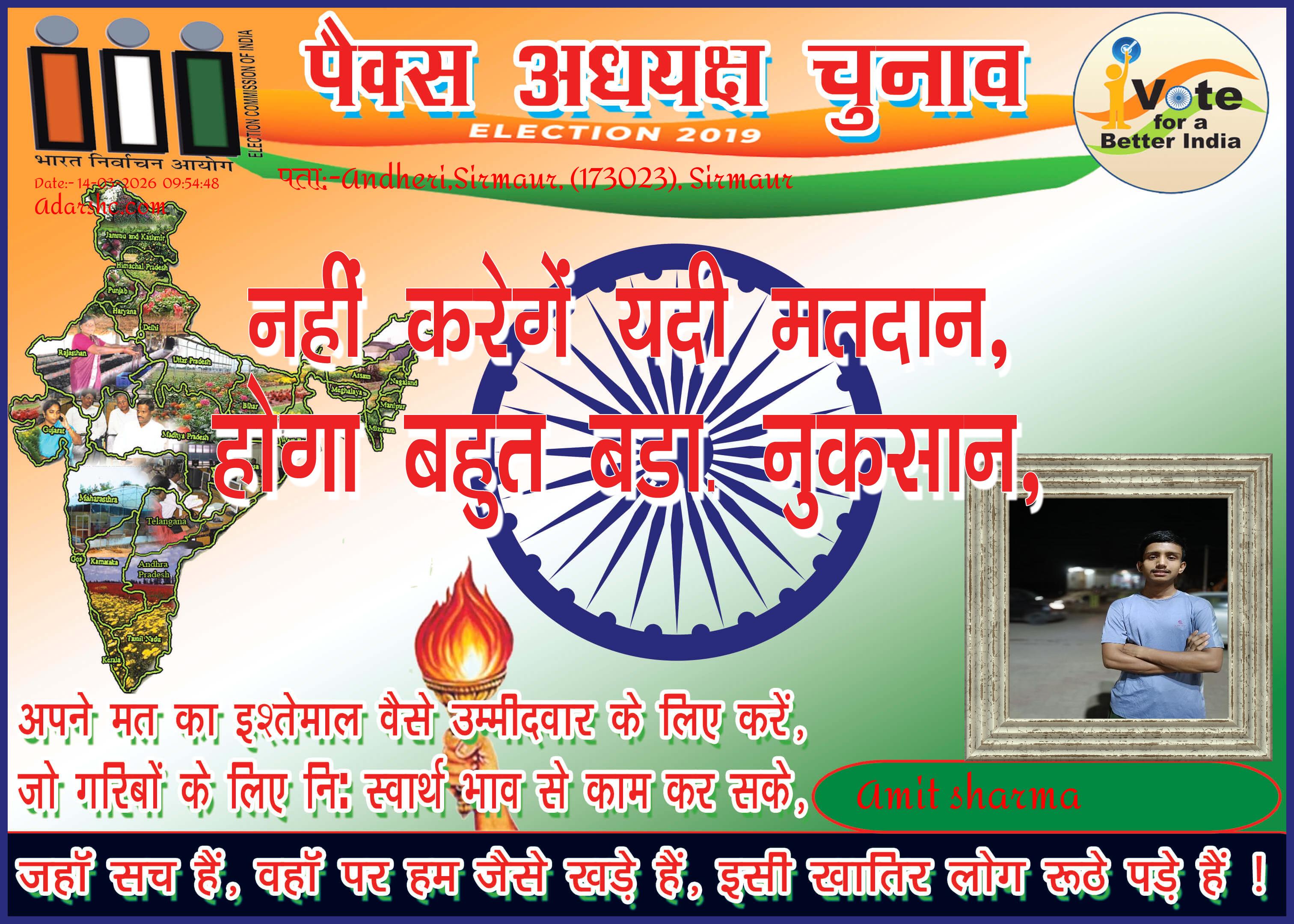 पैक्स चुनाव - 2019 को लेकर यह संदेश लोगों के हित में और सही प्रतिनिधि चुनने हेतु उद्देश्य से जारी किया गया है ! 🙏