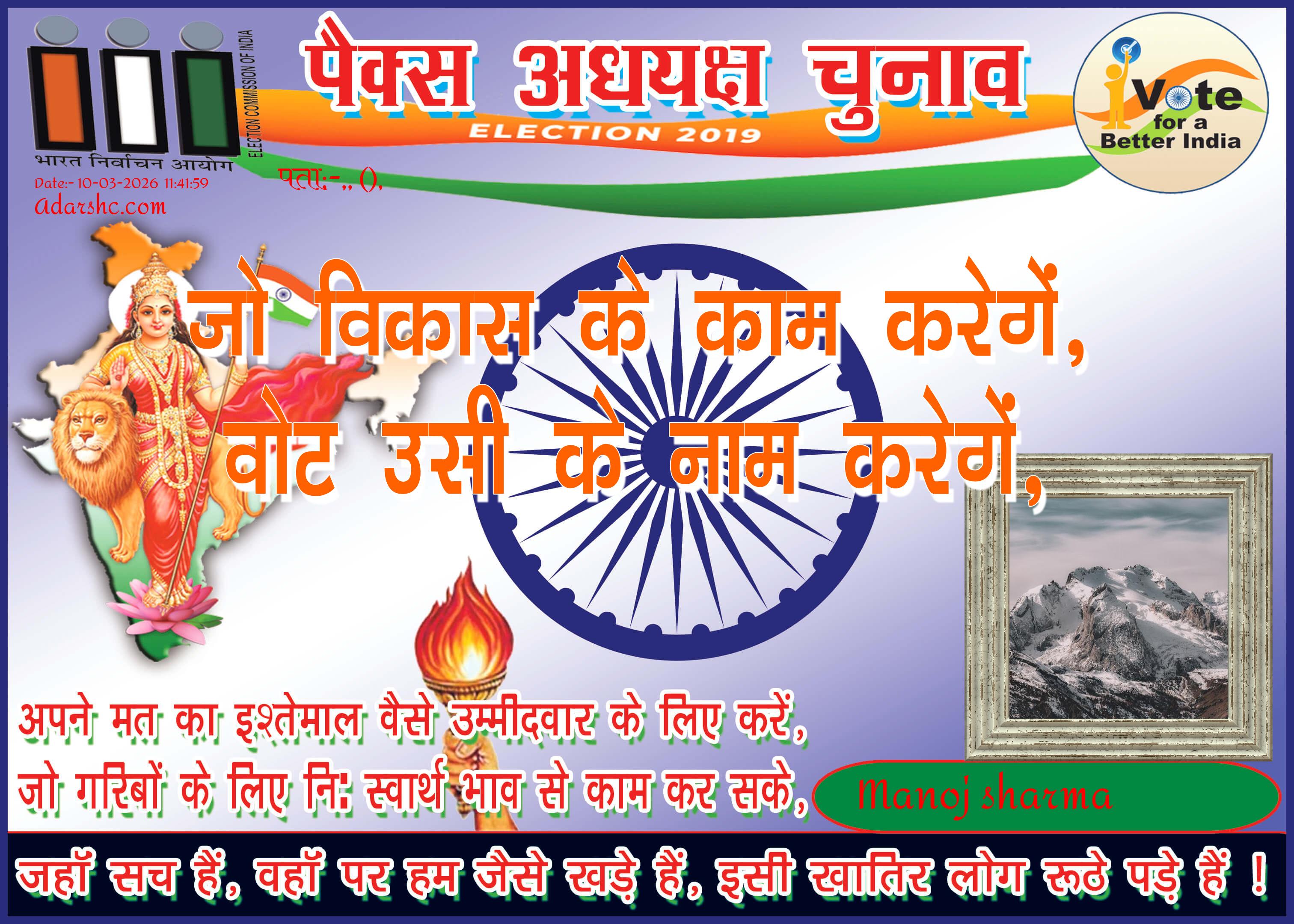 पैक्स चुनाव - 2019 को लेकर यह संदेश लोगों के हित में और सही प्रतिनिधि चुनने हेतु उद्देश्य से जारी किया गया है ! 🙏