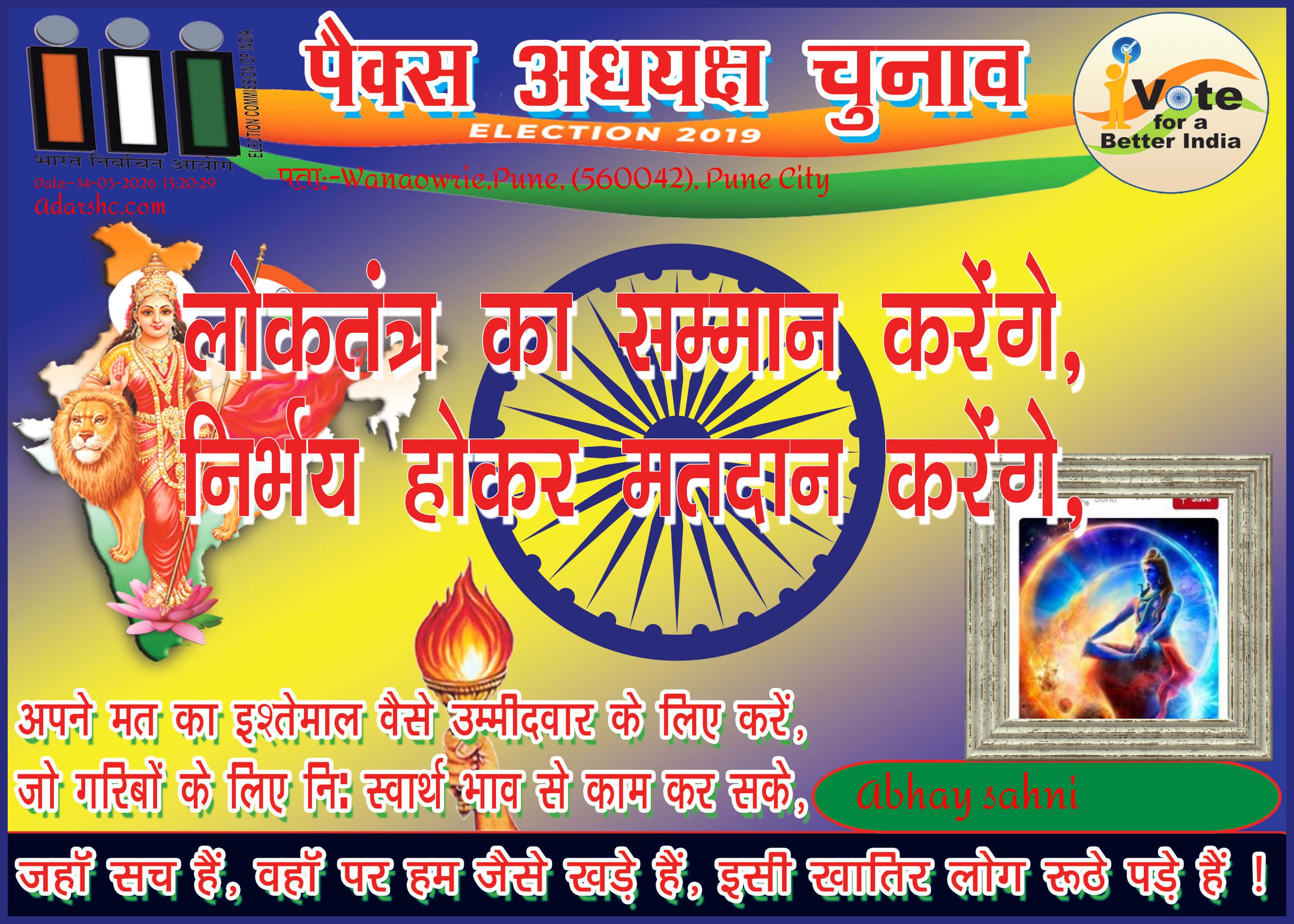 पैक्स चुनाव - 2019 को लेकर यह संदेश लोगों के हित में और सही प्रतिनिधि चुनने हेतु उद्देश्य से जारी किया गया है ! 🙏