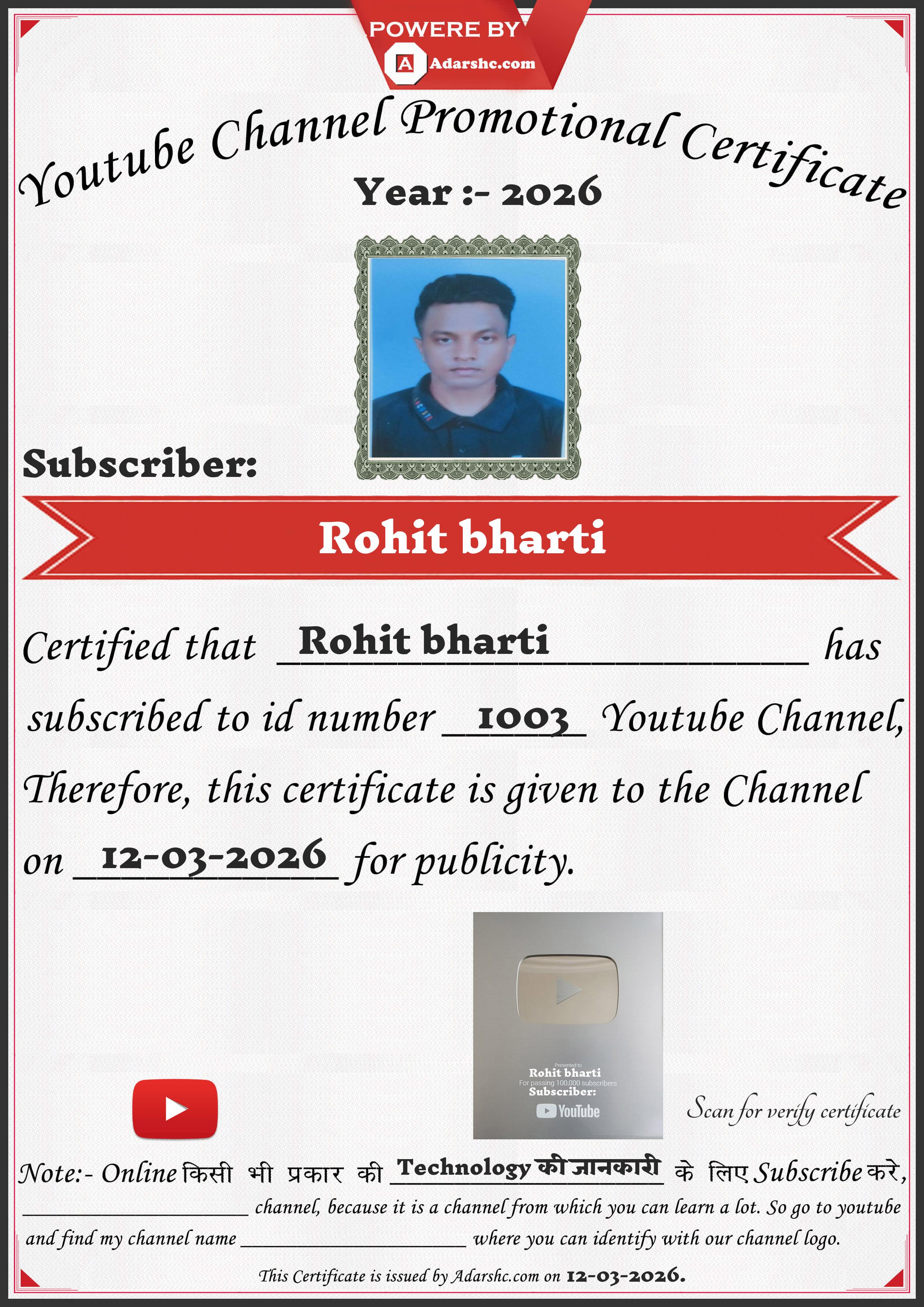 Youtube Promotion Certificate