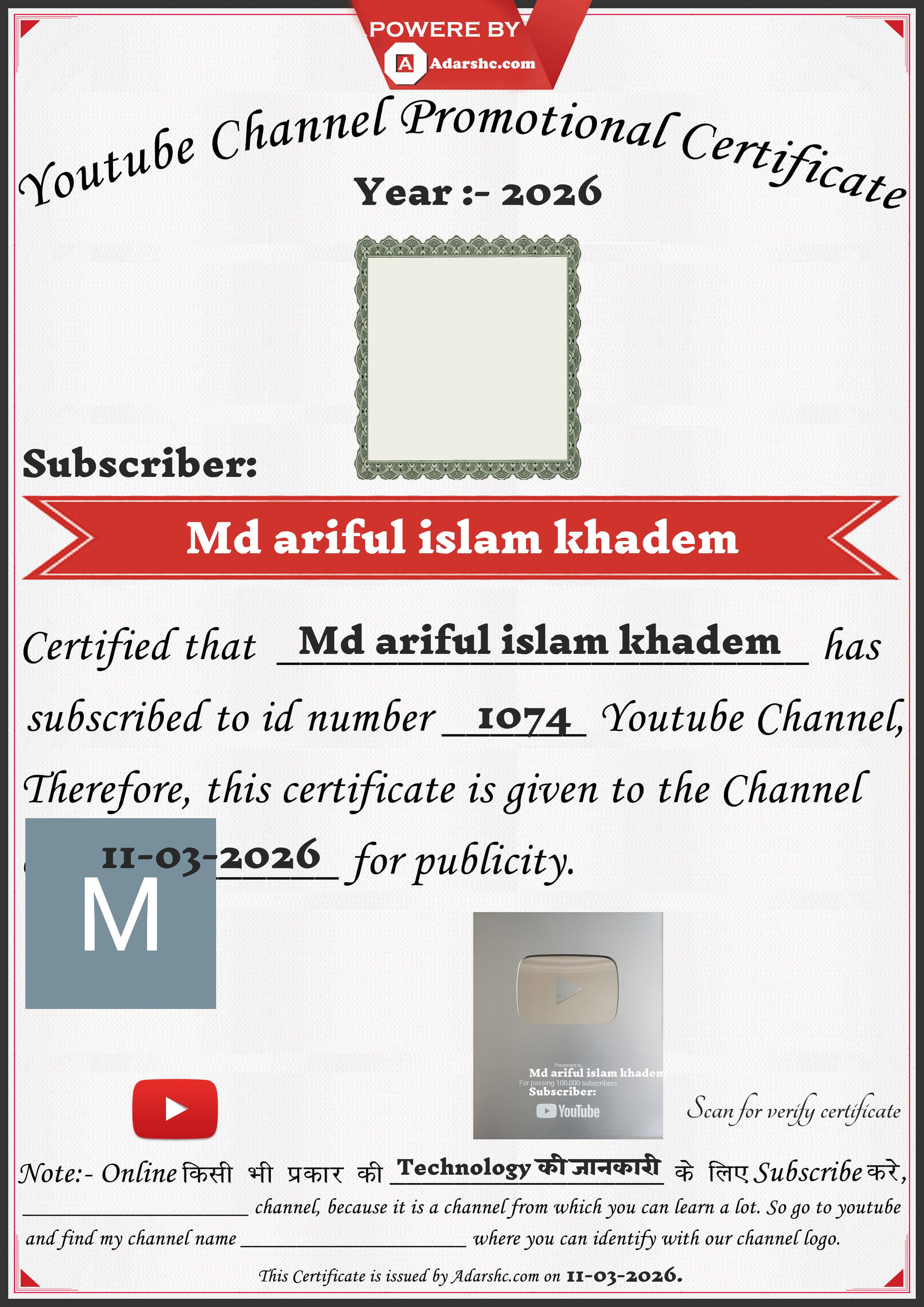 Youtube Promotion Certificate