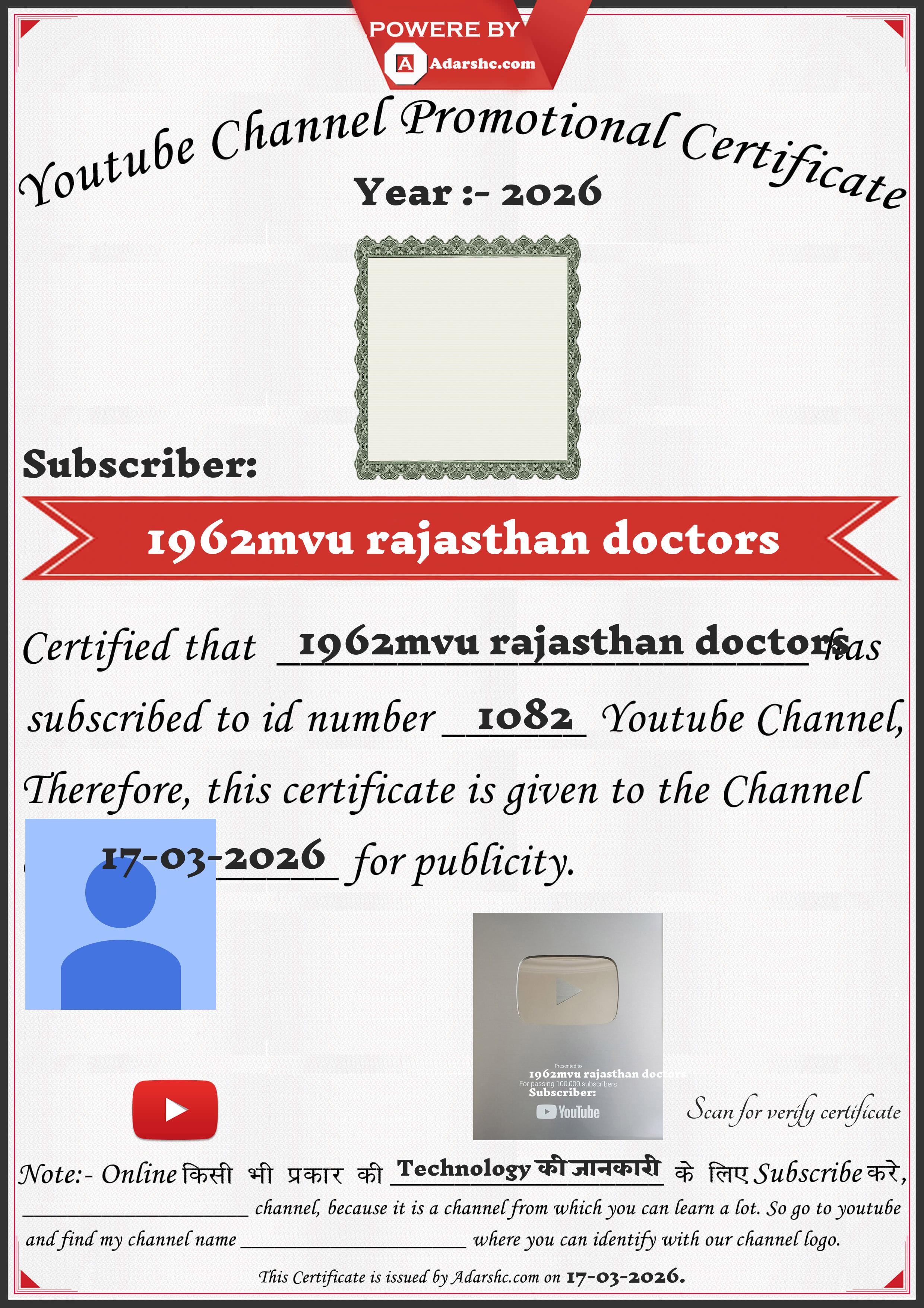 Youtube Promotion Certificate