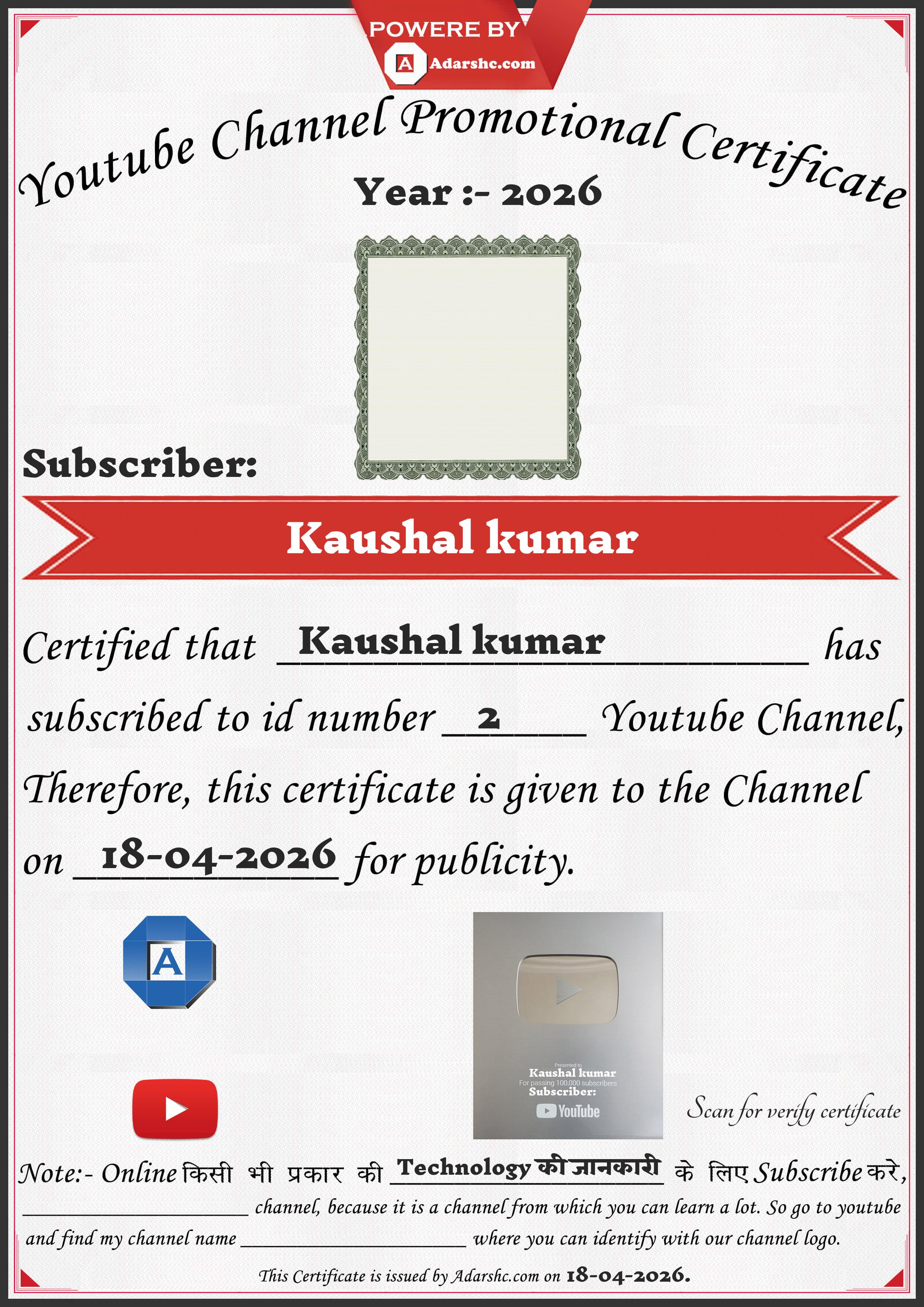 Youtube Promotion Certificate
