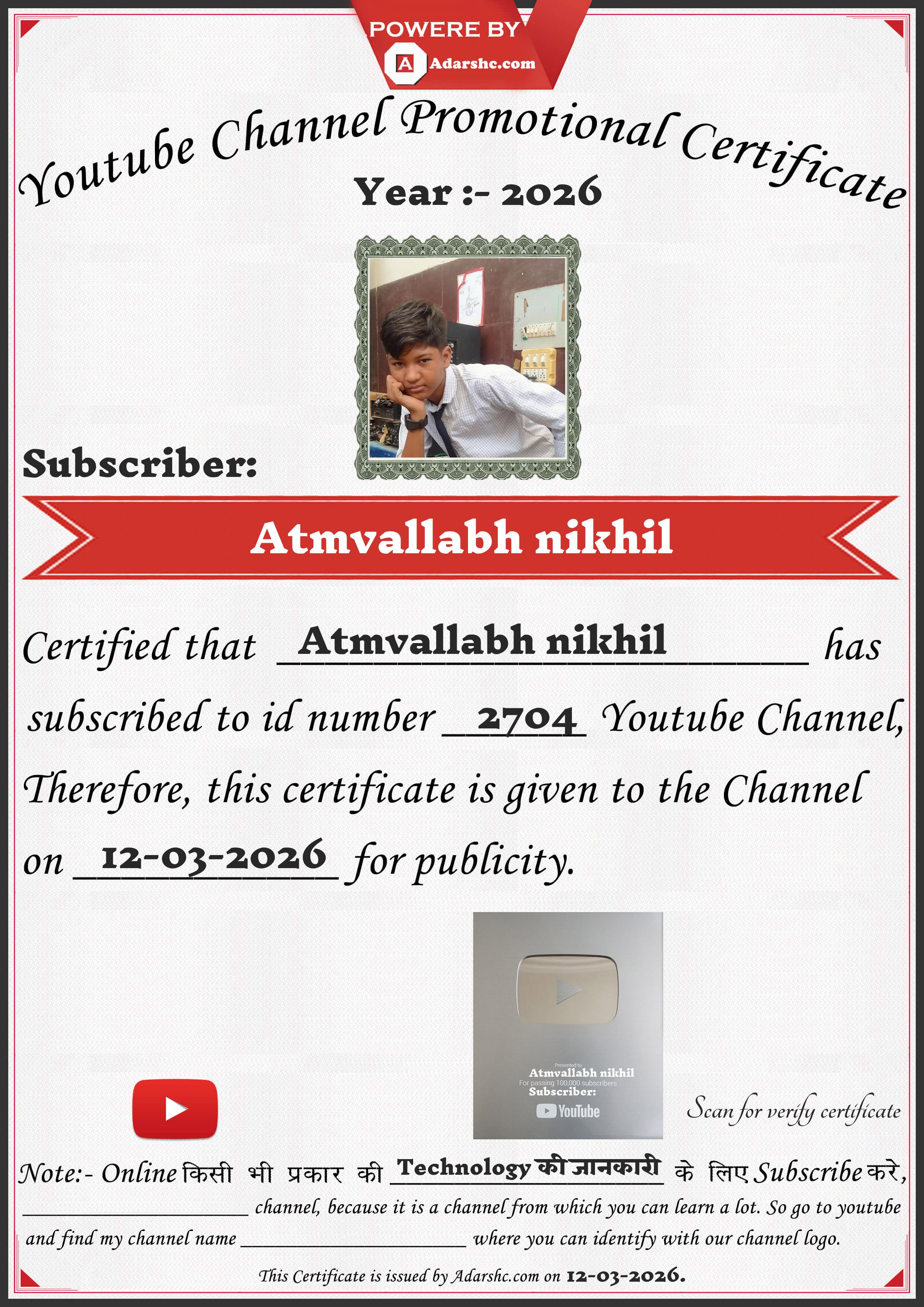 Youtube Promotion Certificate
