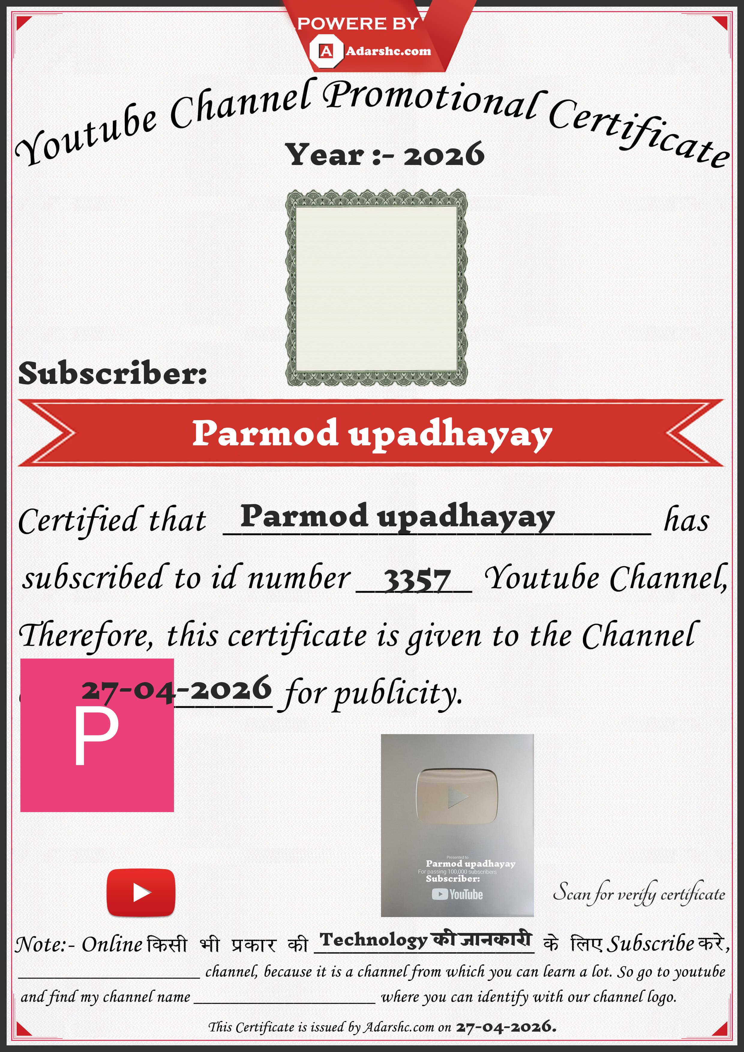 Youtube Promotion Certificate
