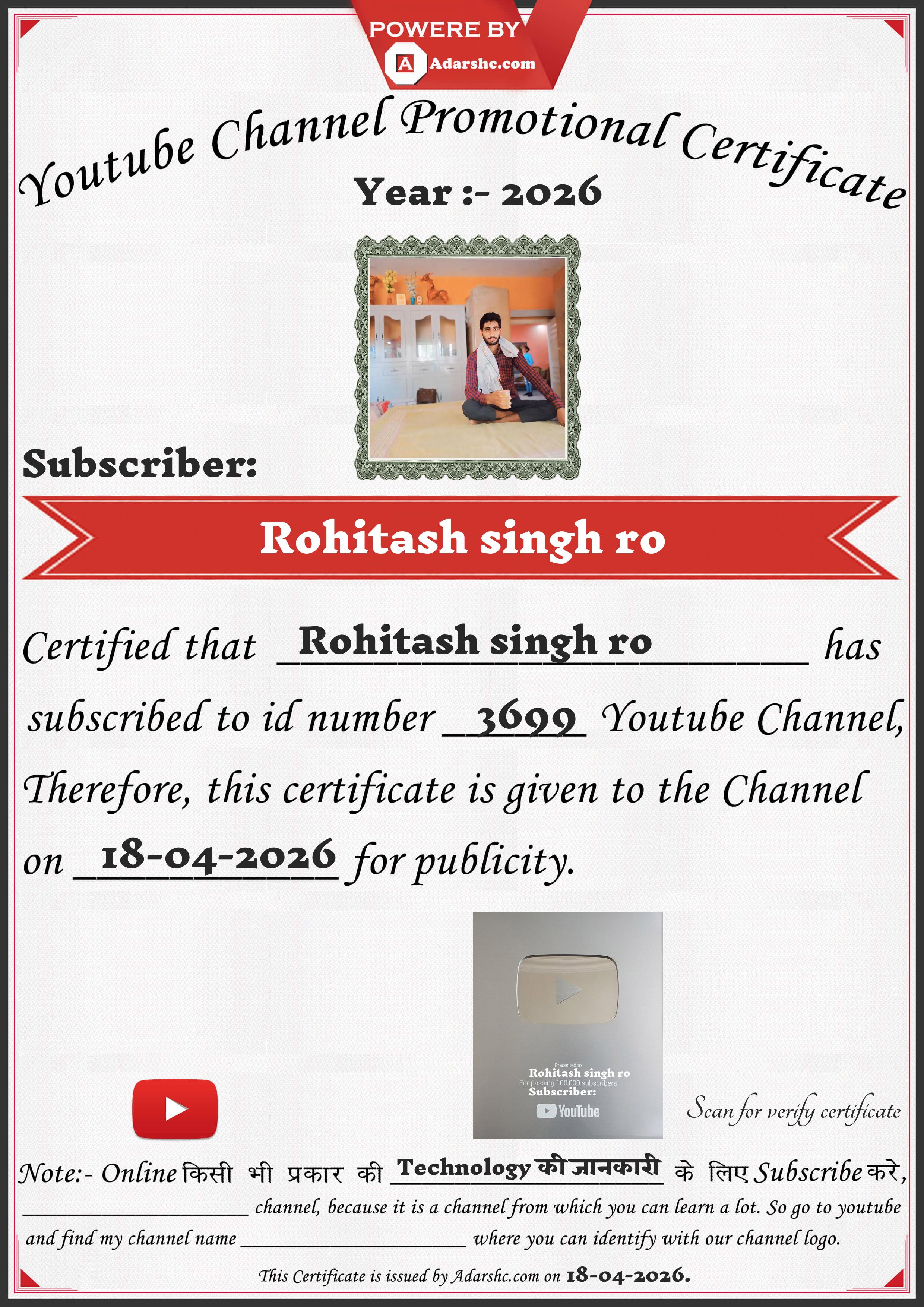 Youtube Promotion Certificate