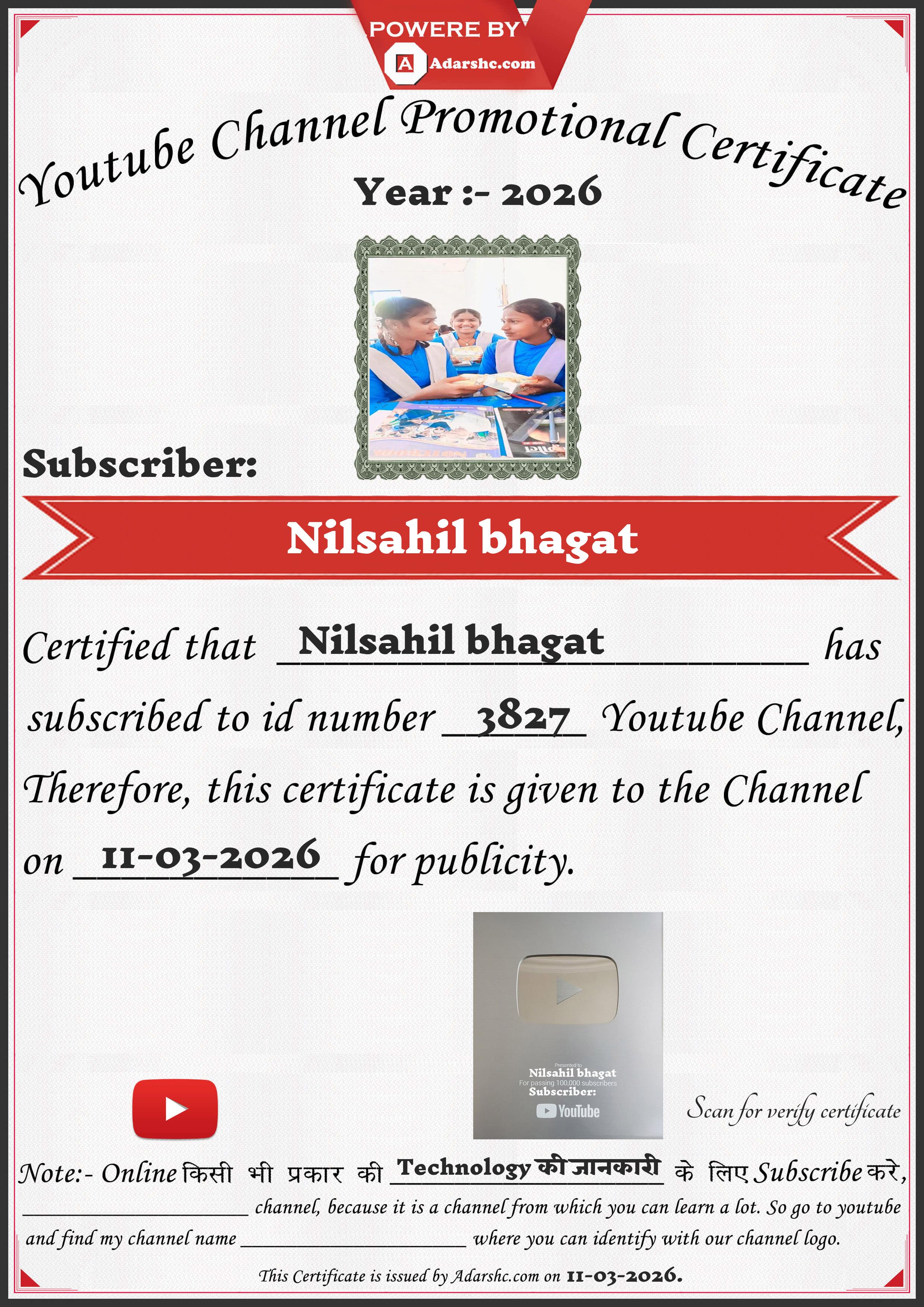 Youtube Promotion Certificate