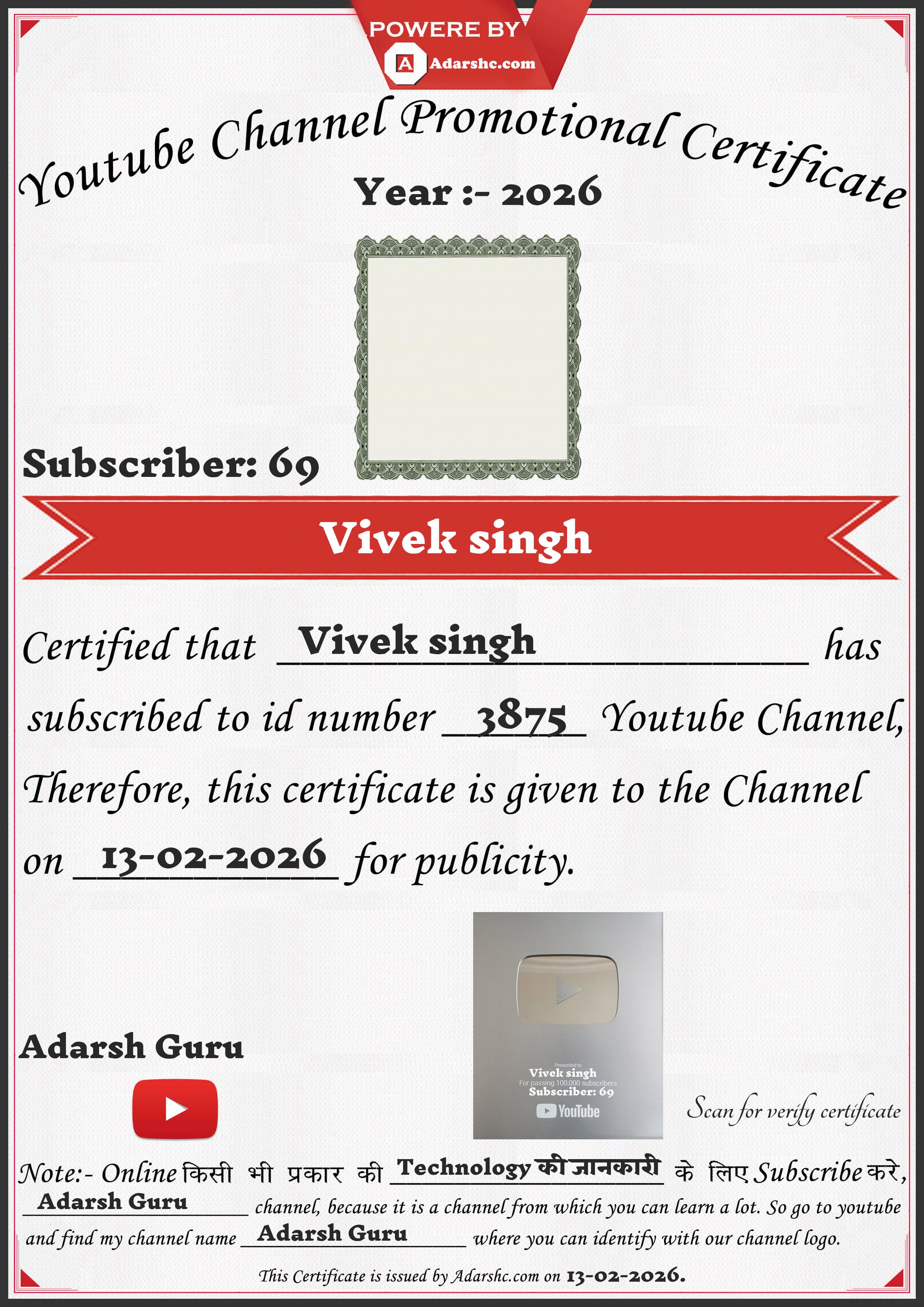 Youtube Promotion Certificate