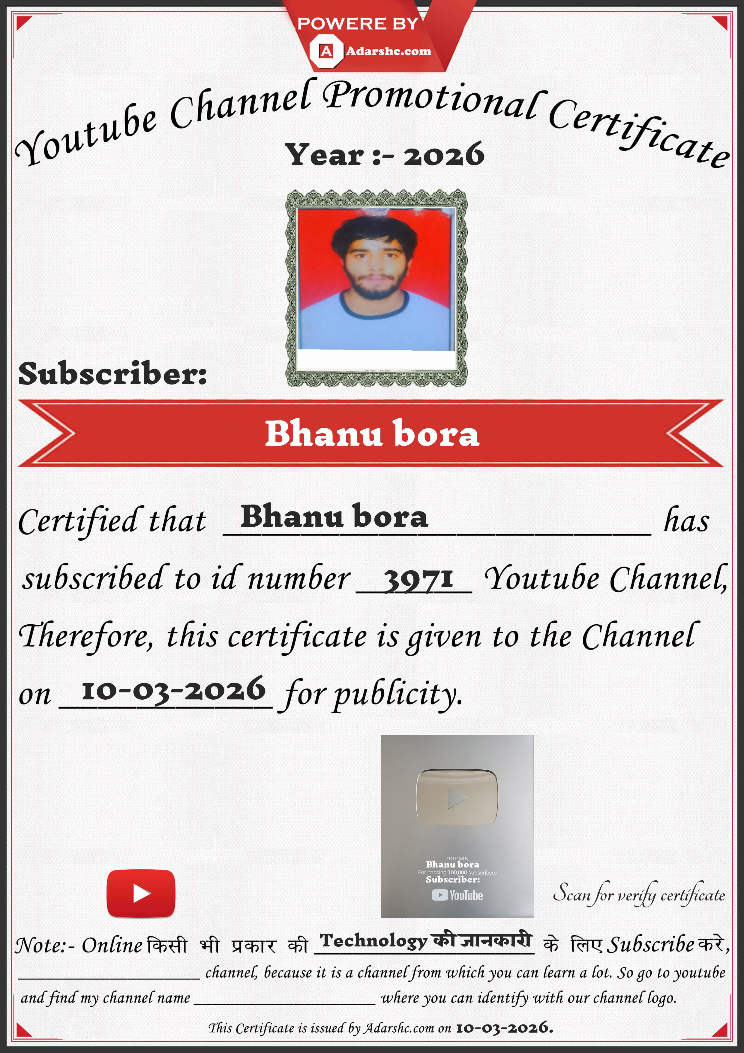 Youtube Promotion Certificate