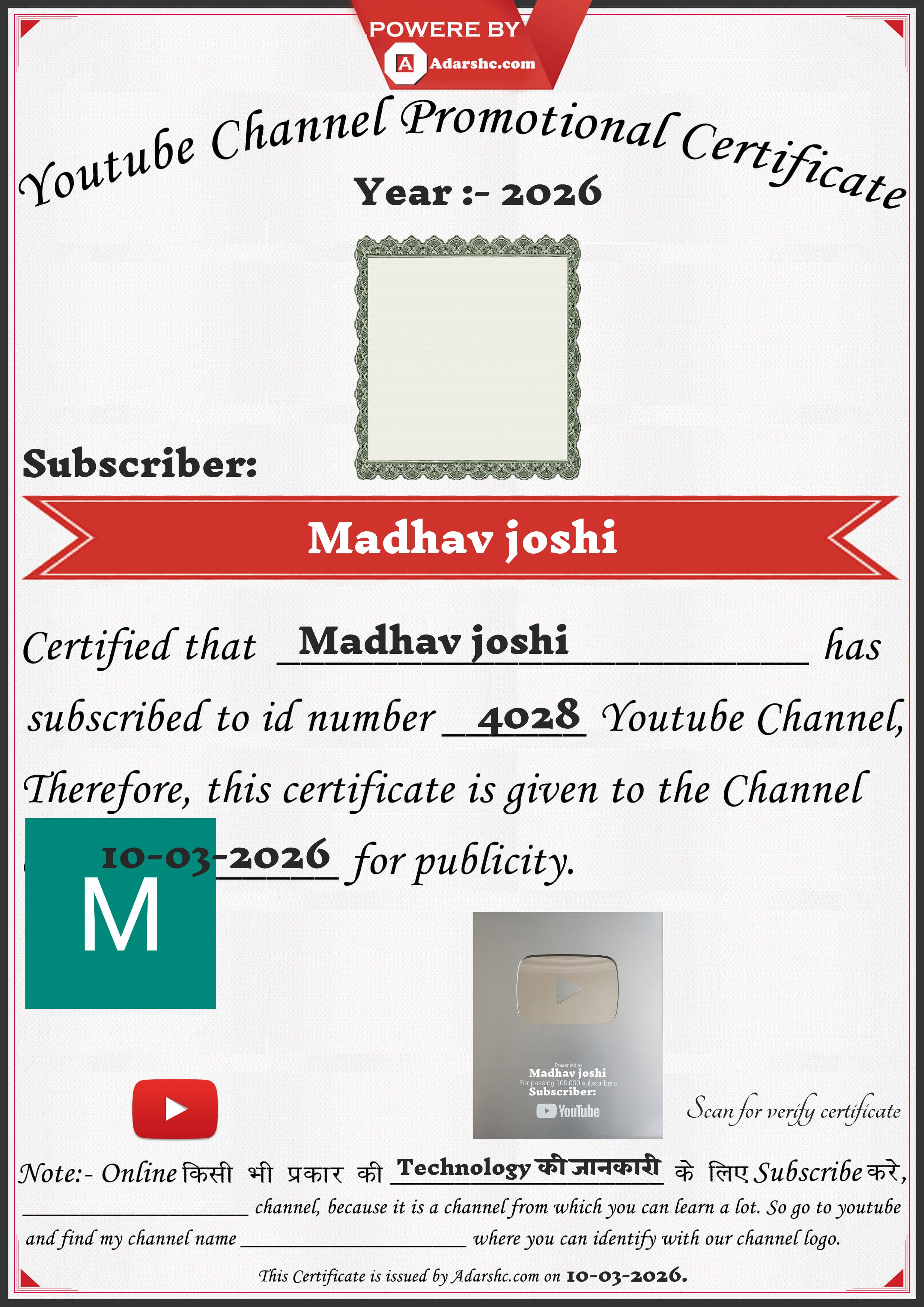 Youtube Promotion Certificate