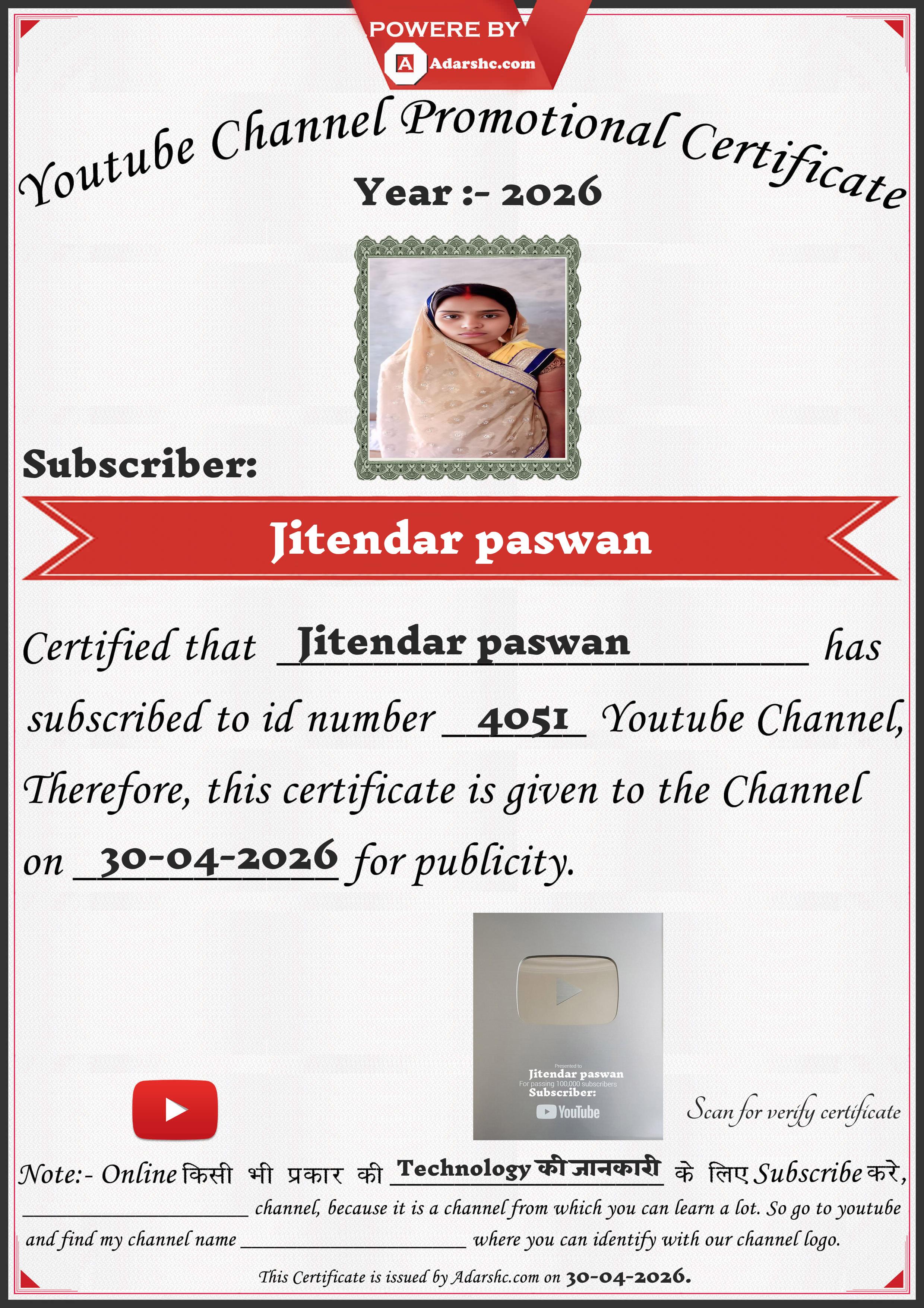 Youtube Promotion Certificate