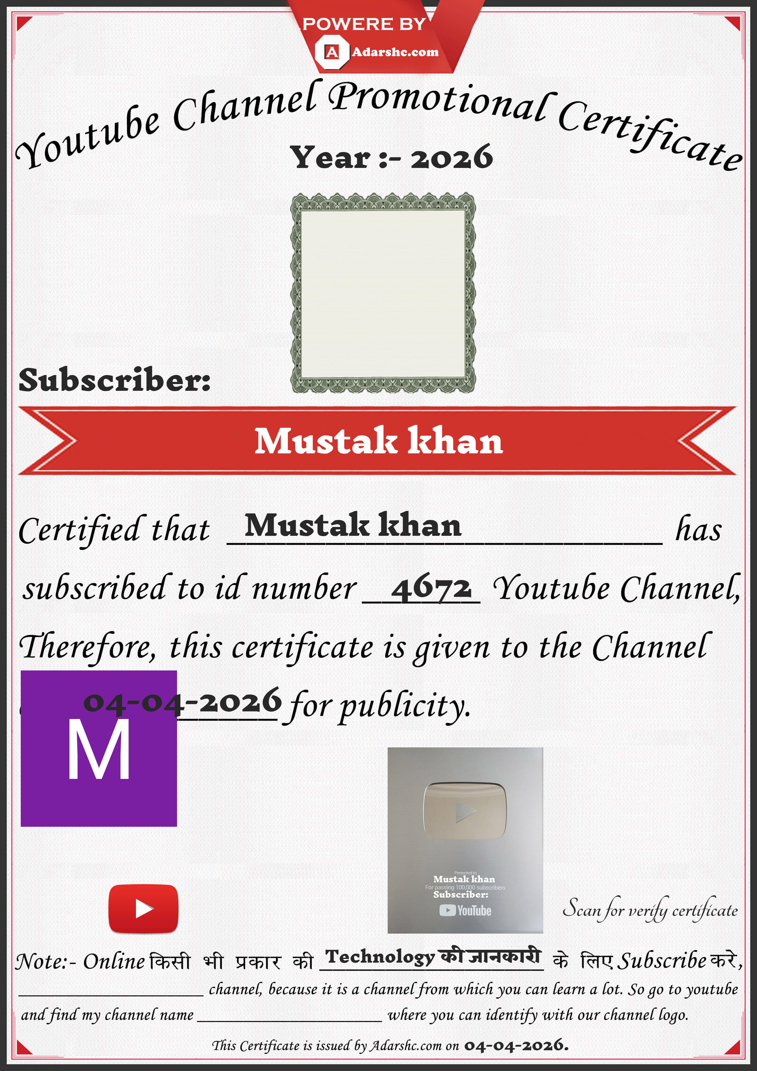 Youtube Promotion Certificate