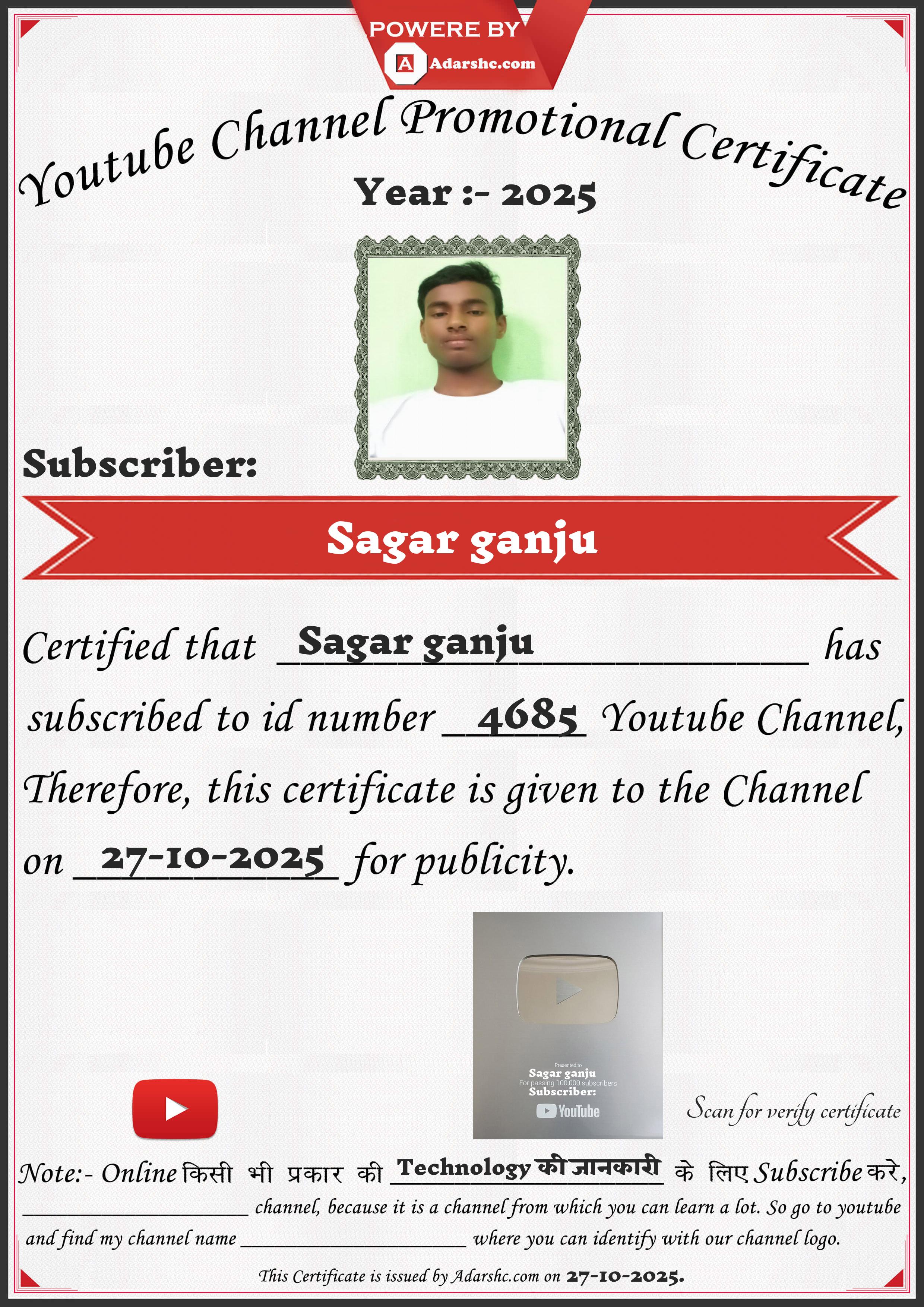 Youtube Promotion Certificate