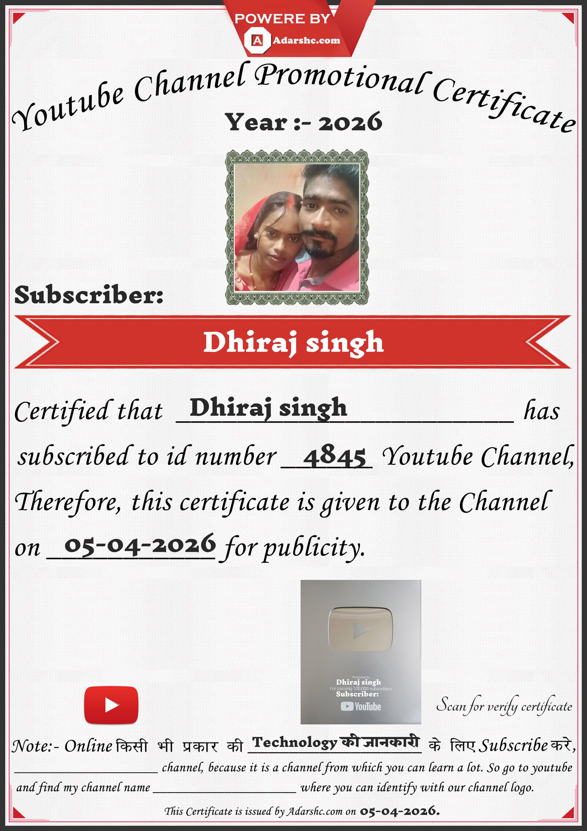 Youtube Promotion Certificate