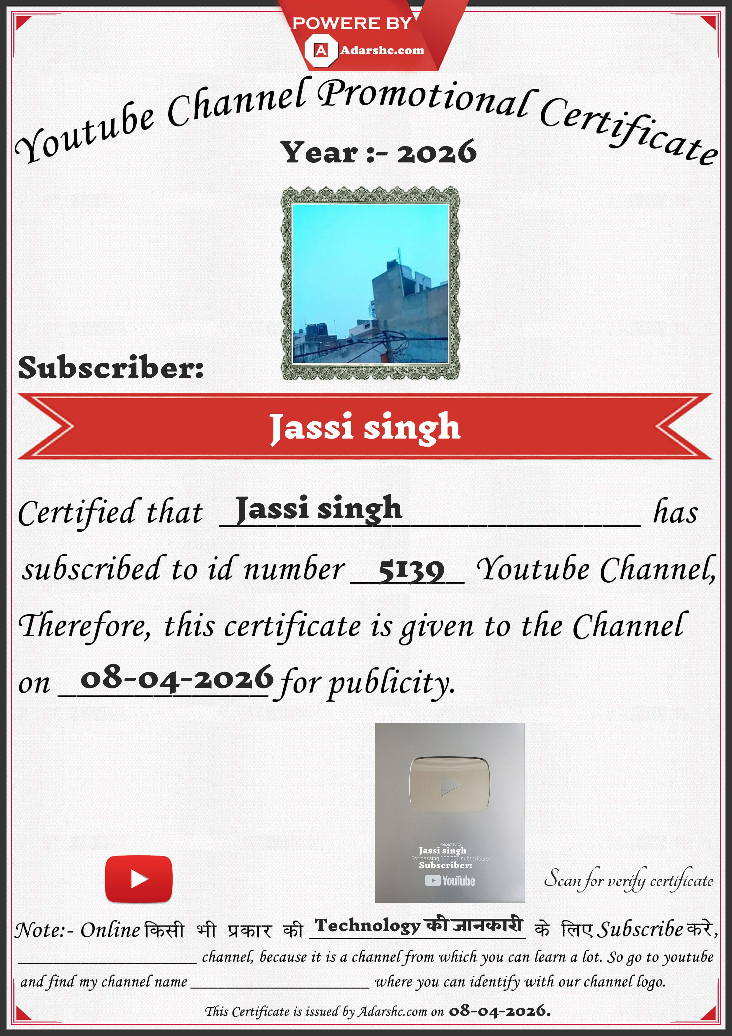 Youtube Promotion Certificate