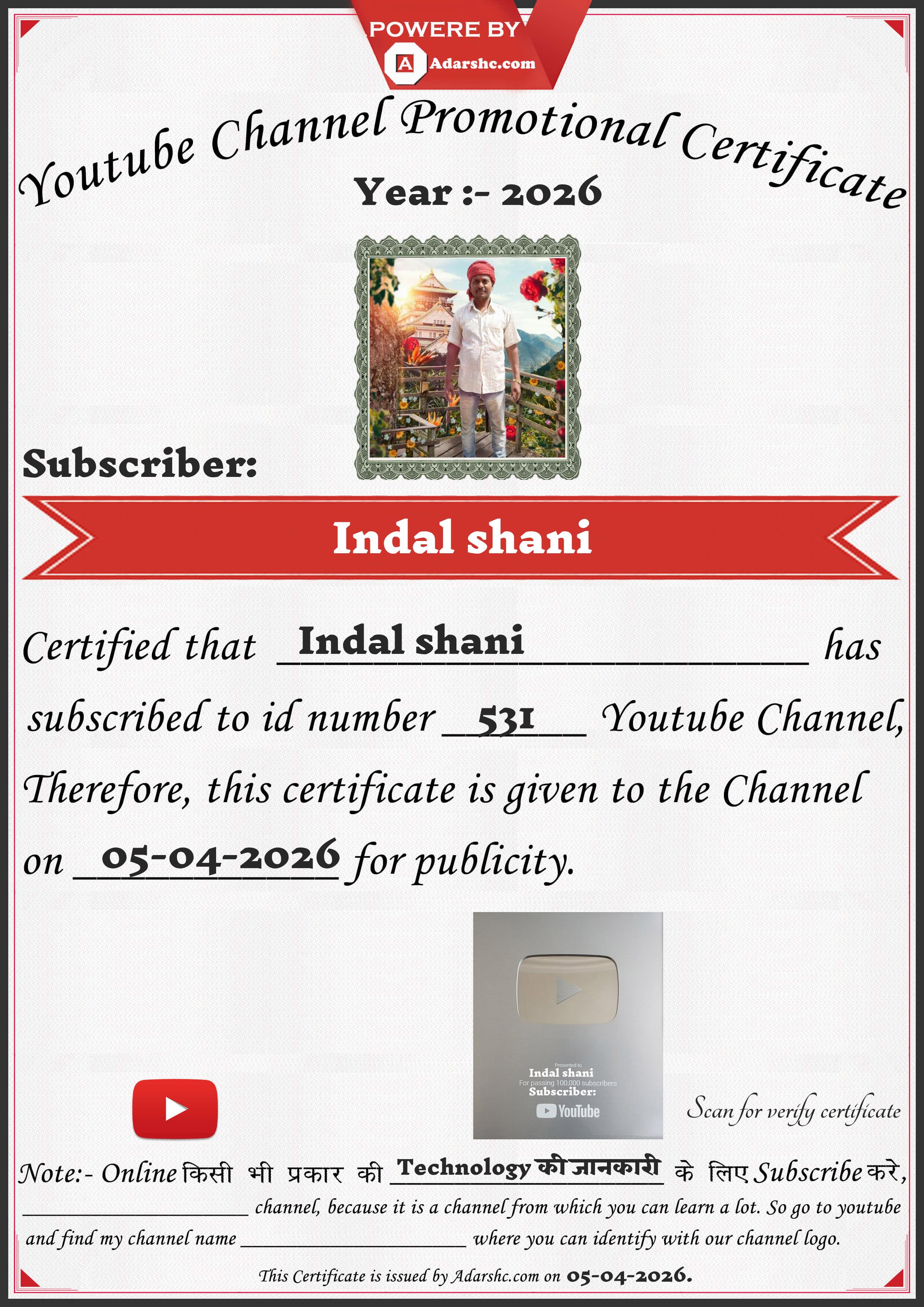 Youtube Promotion Certificate