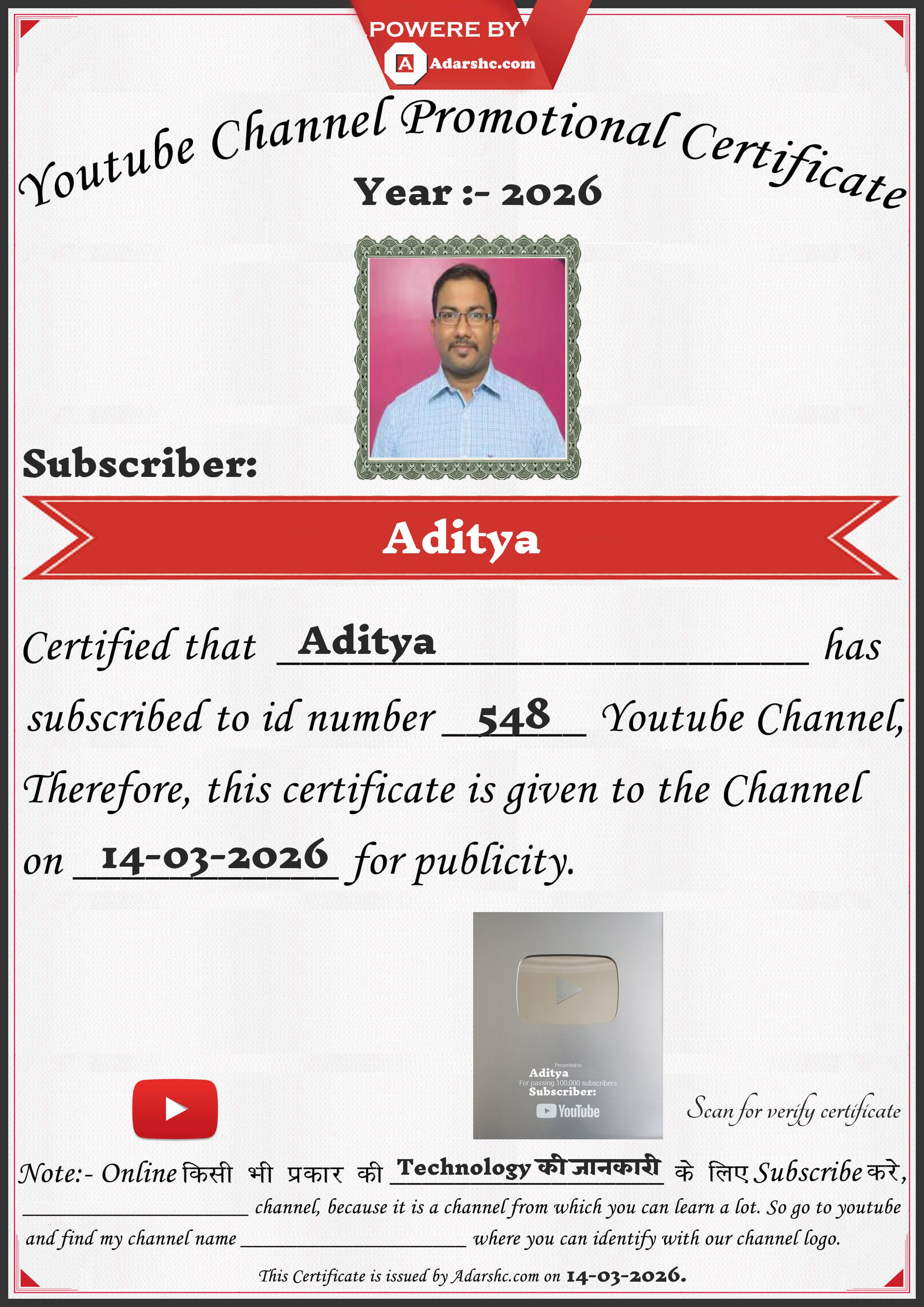 Youtube Promotion Certificate