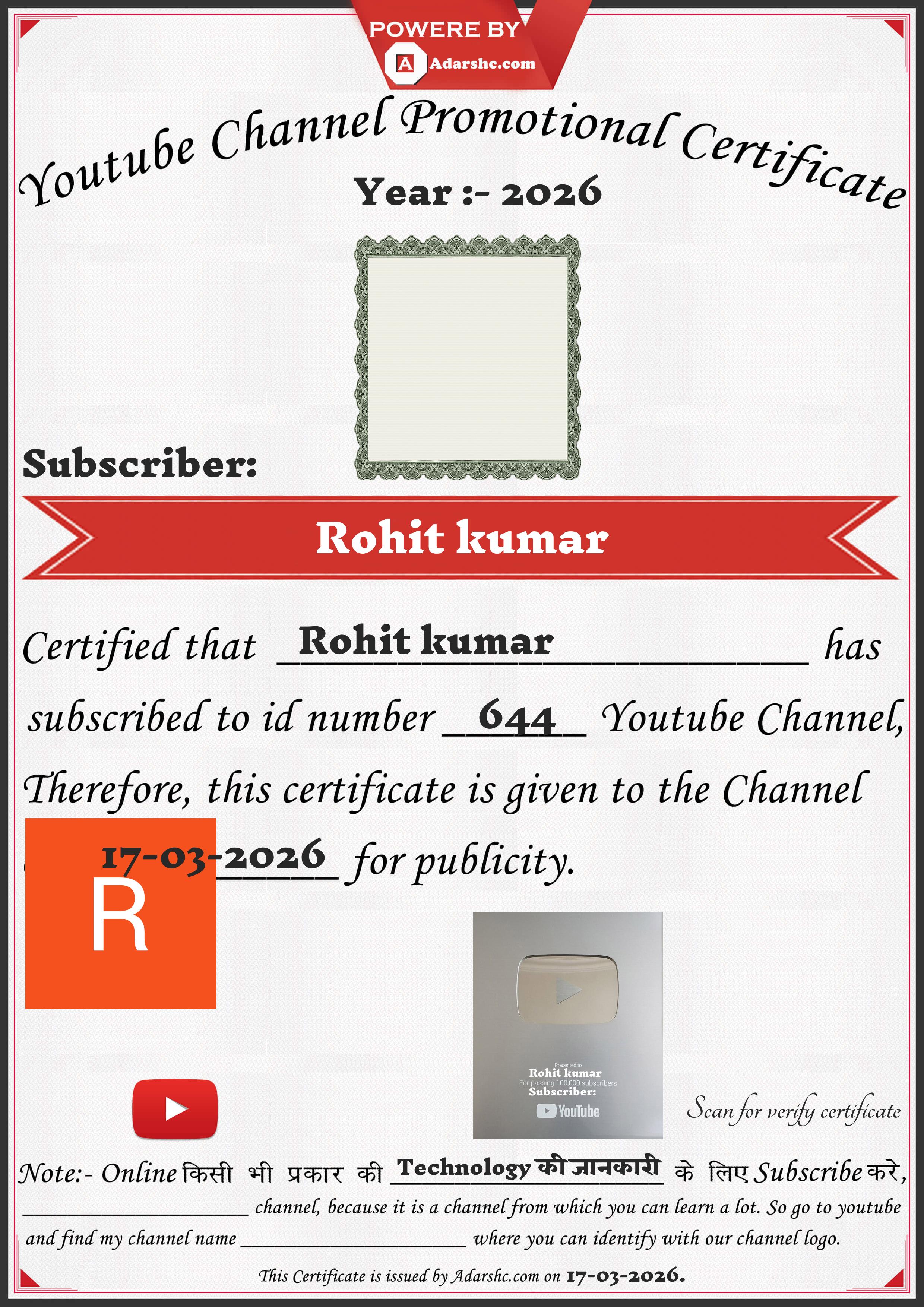 Youtube Promotion Certificate
