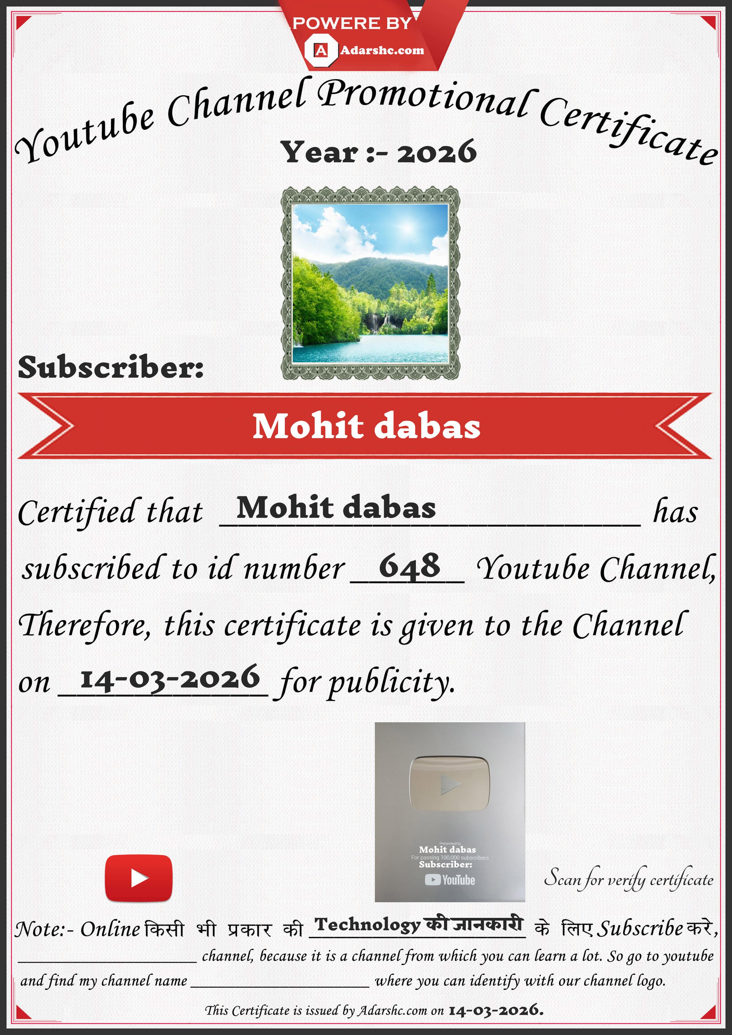 Youtube Promotion Certificate