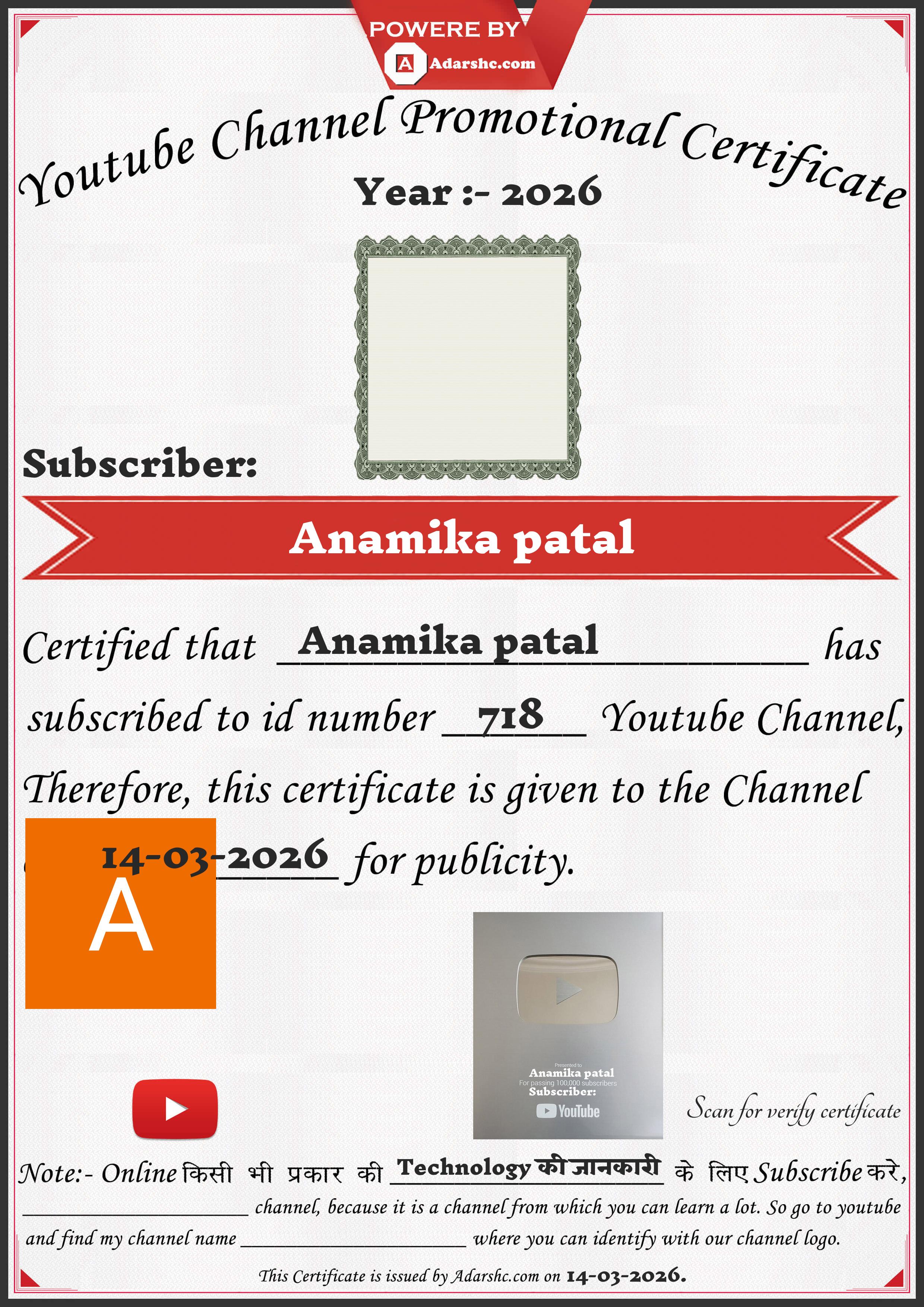 Youtube Promotion Certificate