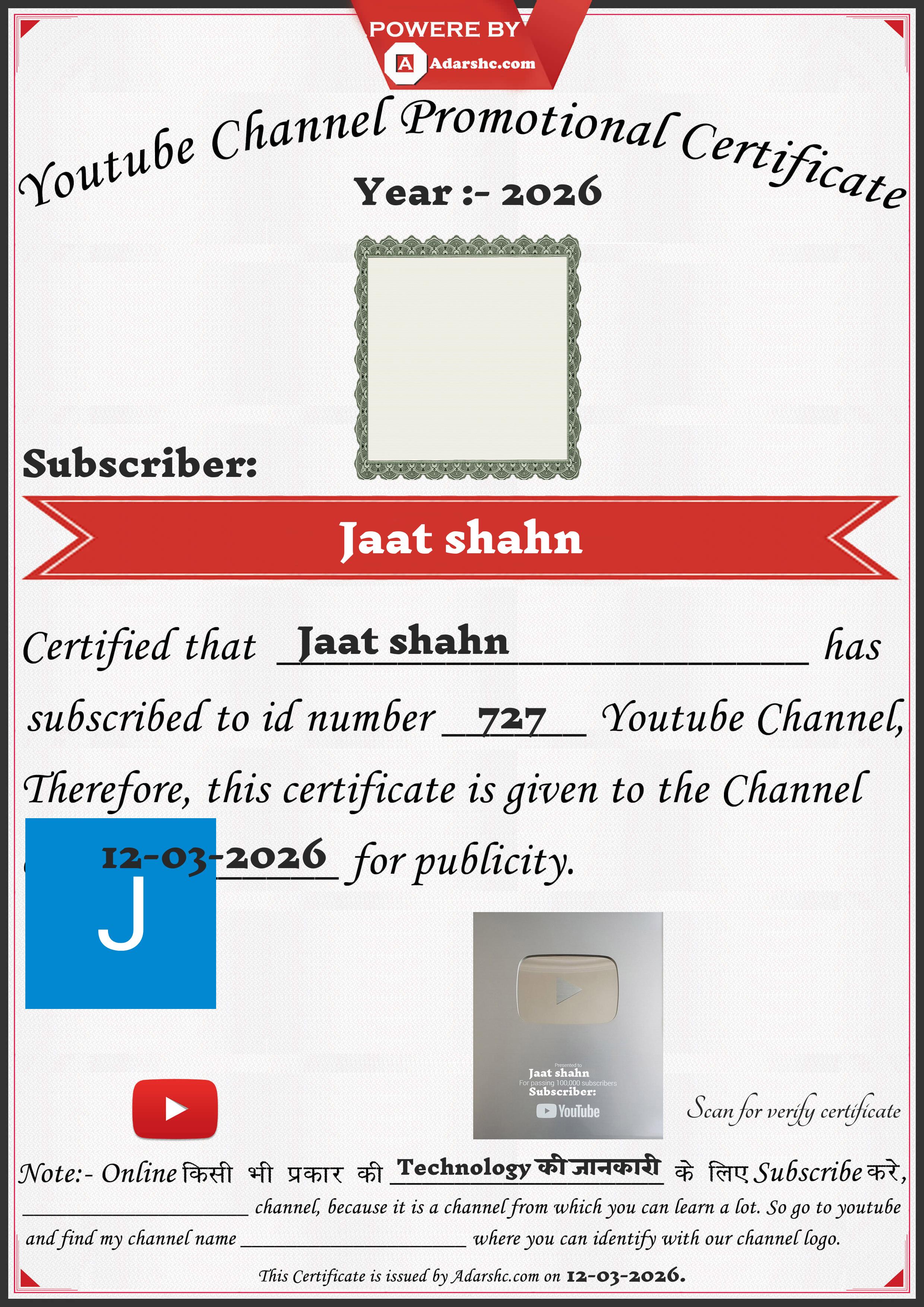 Youtube Promotion Certificate