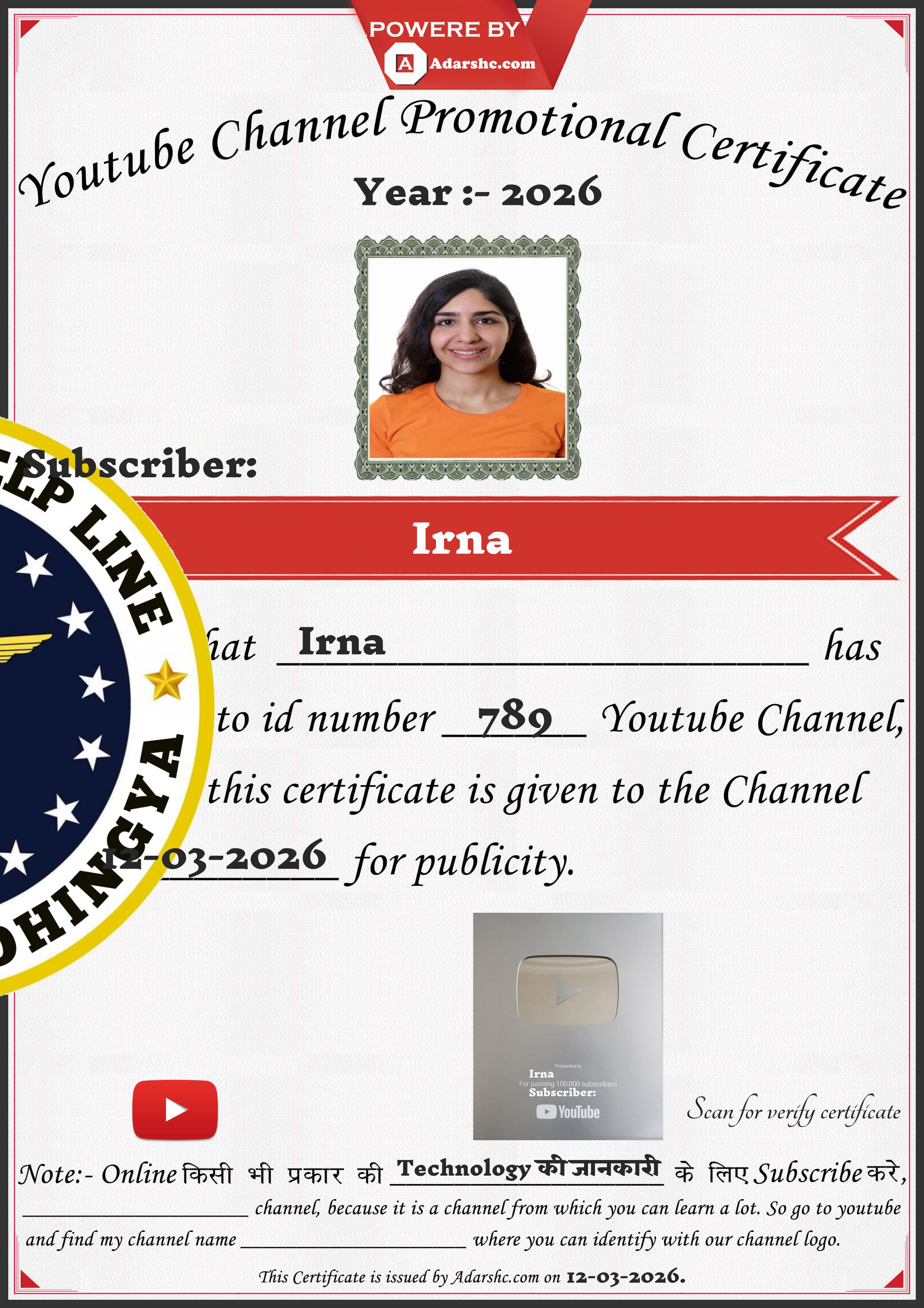 Youtube Promotion Certificate