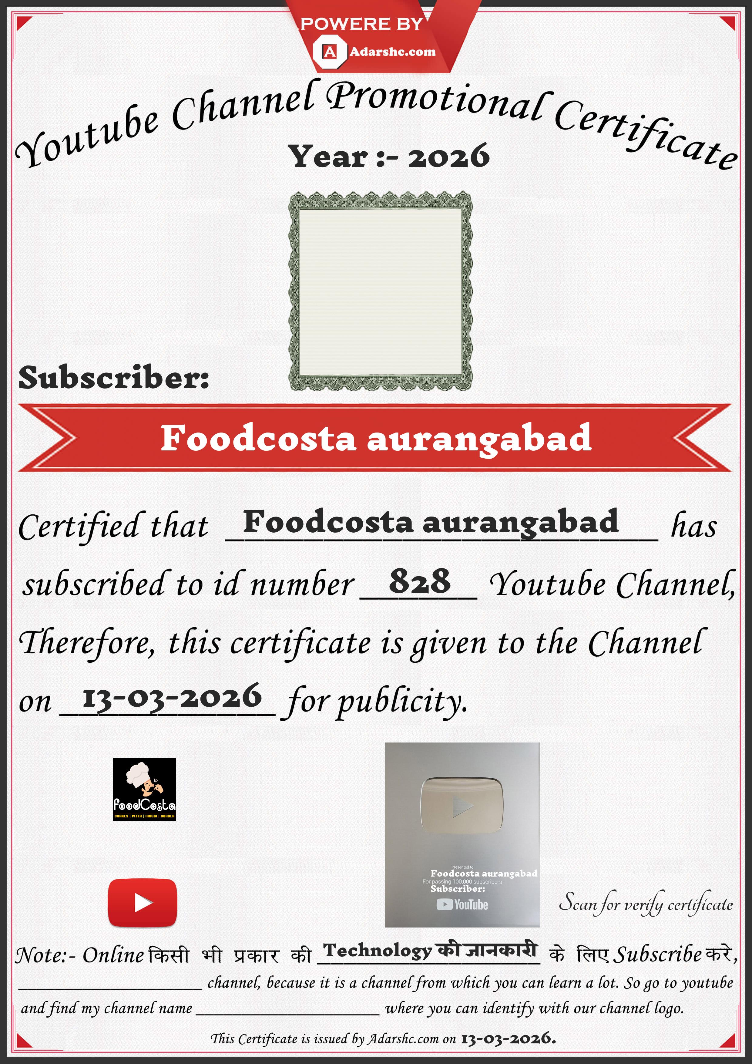 Youtube Promotion Certificate