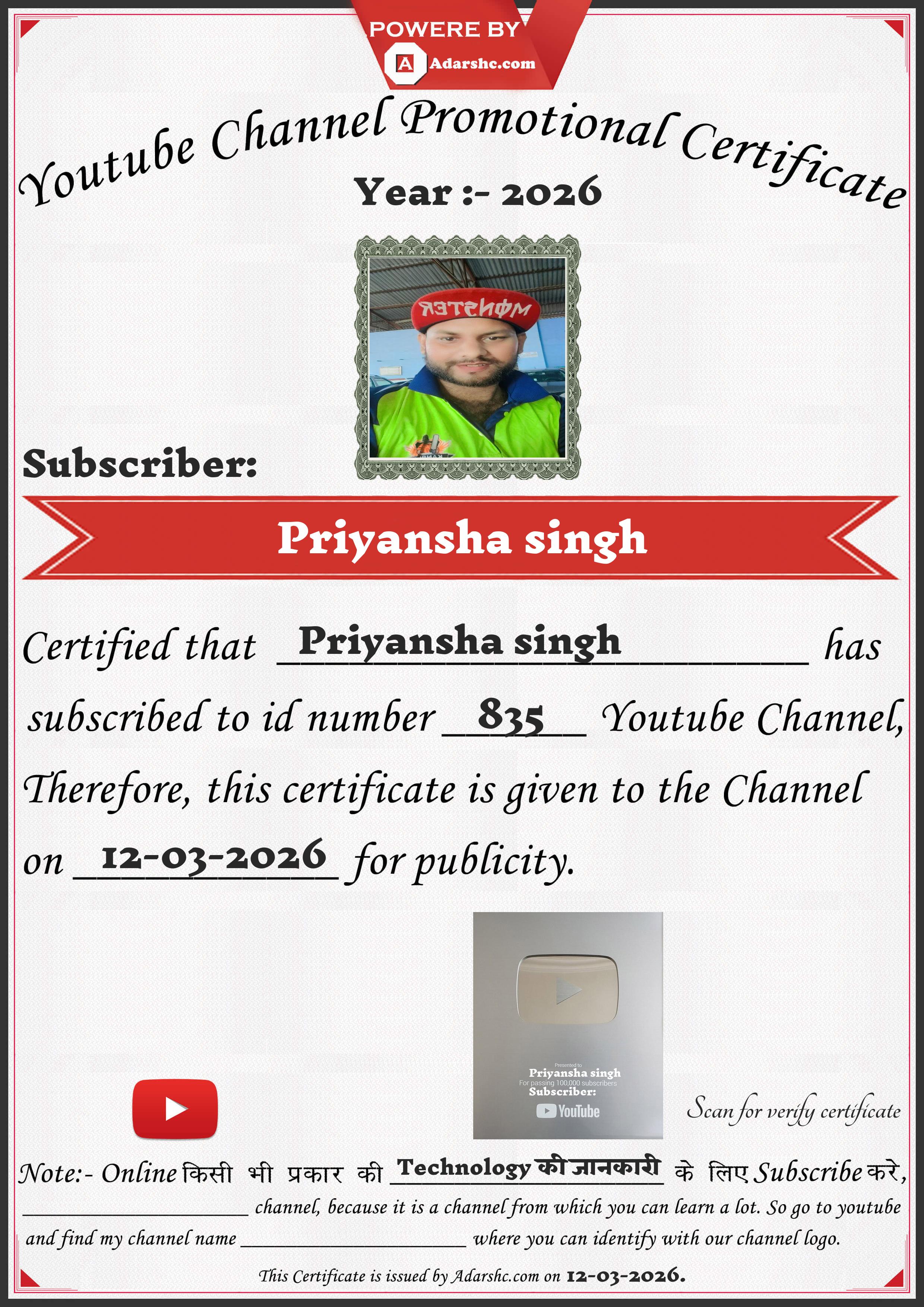 Youtube Promotion Certificate