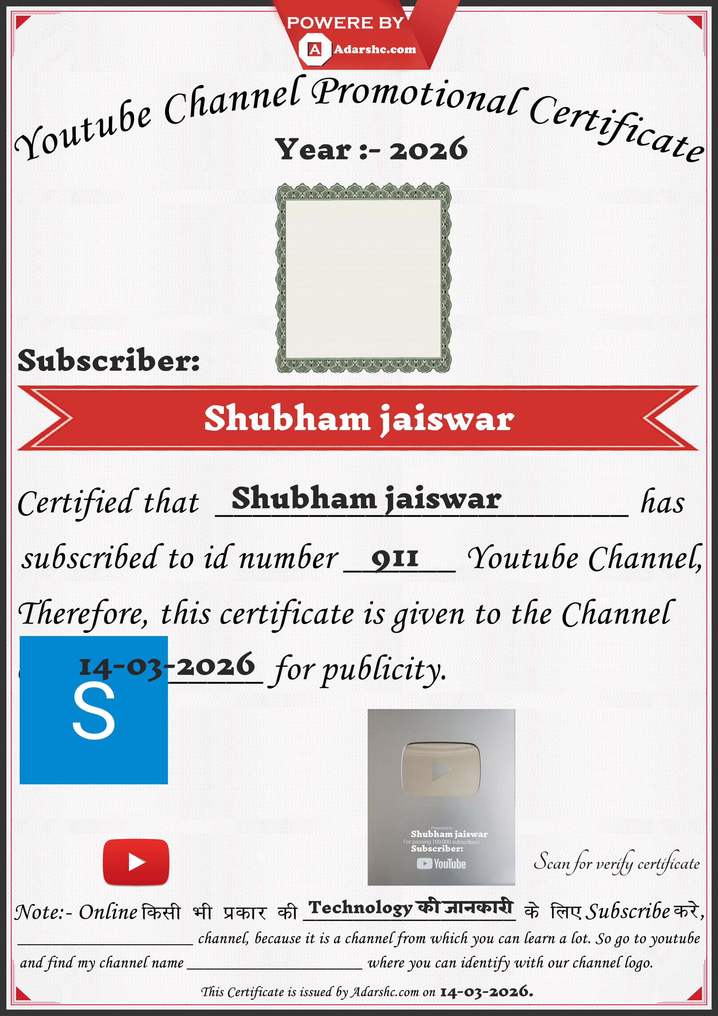 Youtube Promotion Certificate