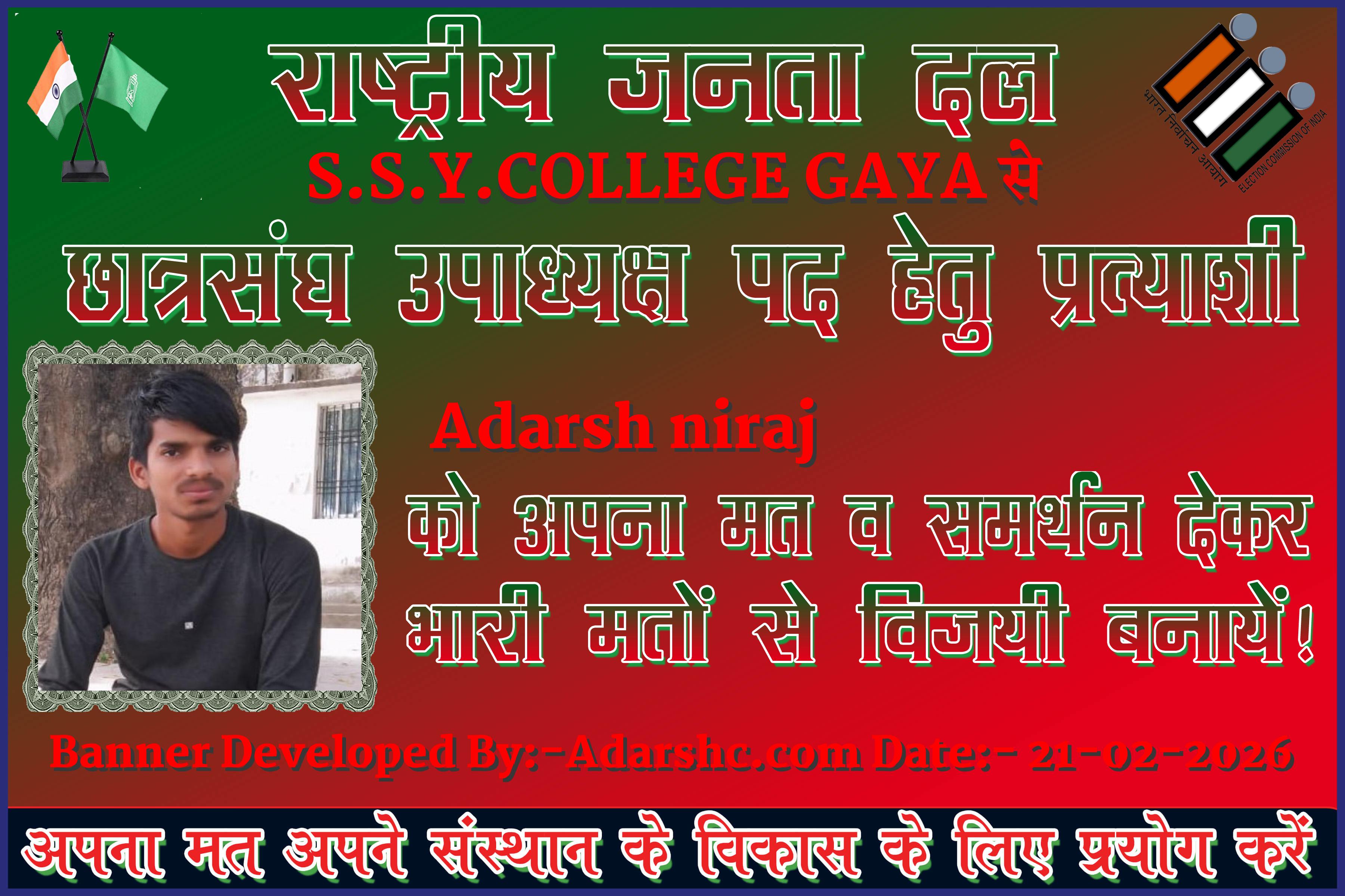 ☆ नमस्कार दोस्तों मेरा नाम Adarsh niraj है, मैं S.S.Y.COLLEGE GAYA का छात्र/छात्रा हूँ,